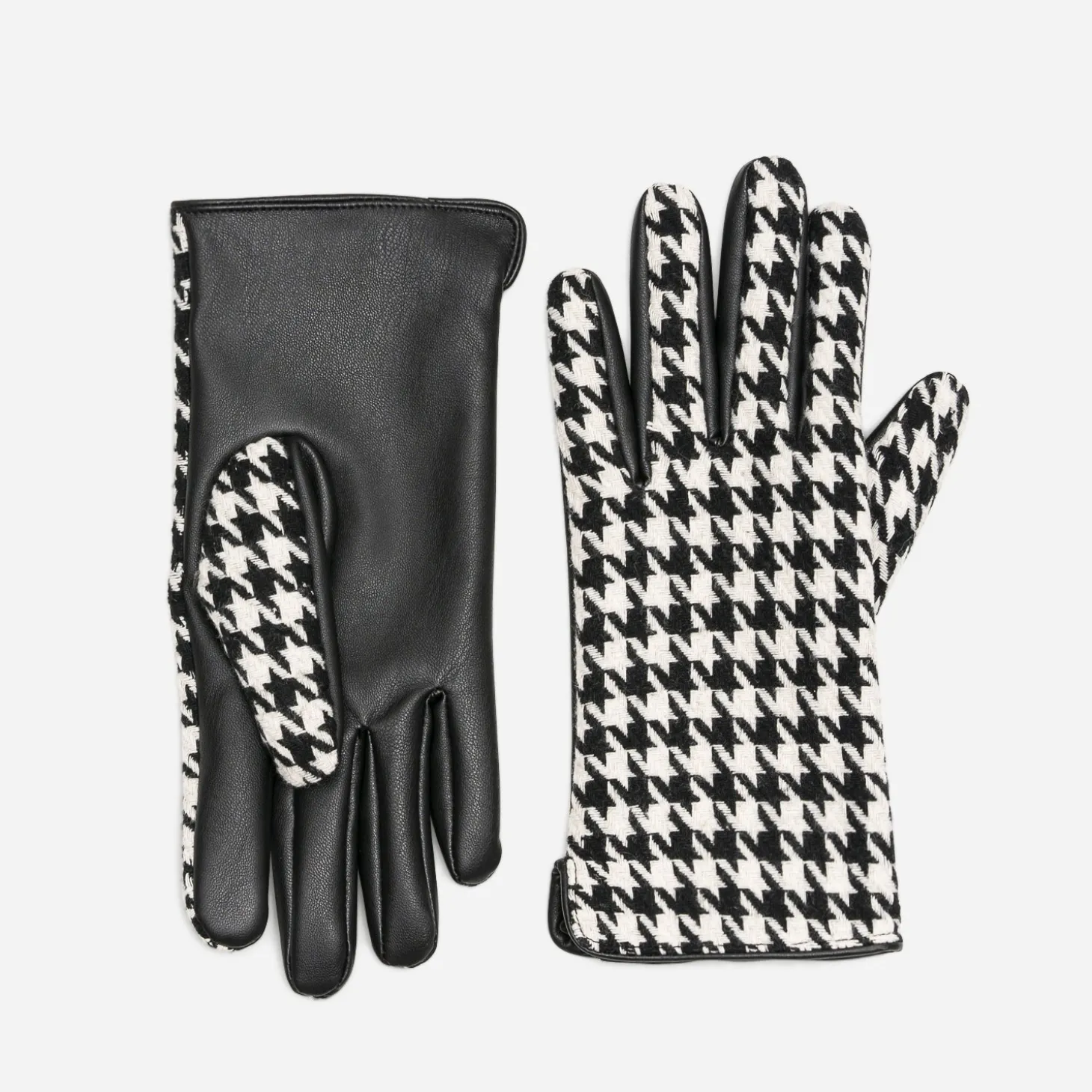 Matière synthétique noire sur le dessous, textile à motif pied-de-coq sur le dessus, ces gants pour femme finalisent le look d’hiver, d’une touche rétro très pointue. Et le duo noir et écru joue à nouveau, sa partition, avec brio !