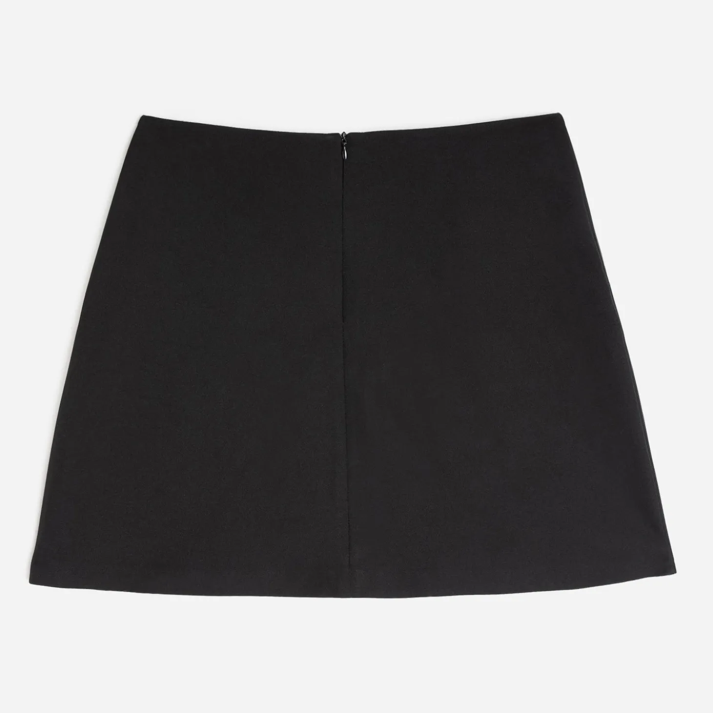 Coup de cœur pour cette jupe courte, en textile noir, pour un style preppy. Elle séduit par ses plis creux placés devant, et son esprit pont, assuré par 4 boutons boule en métal décoratifs. Un modèle à réserver avec un haut et des collants noirs.