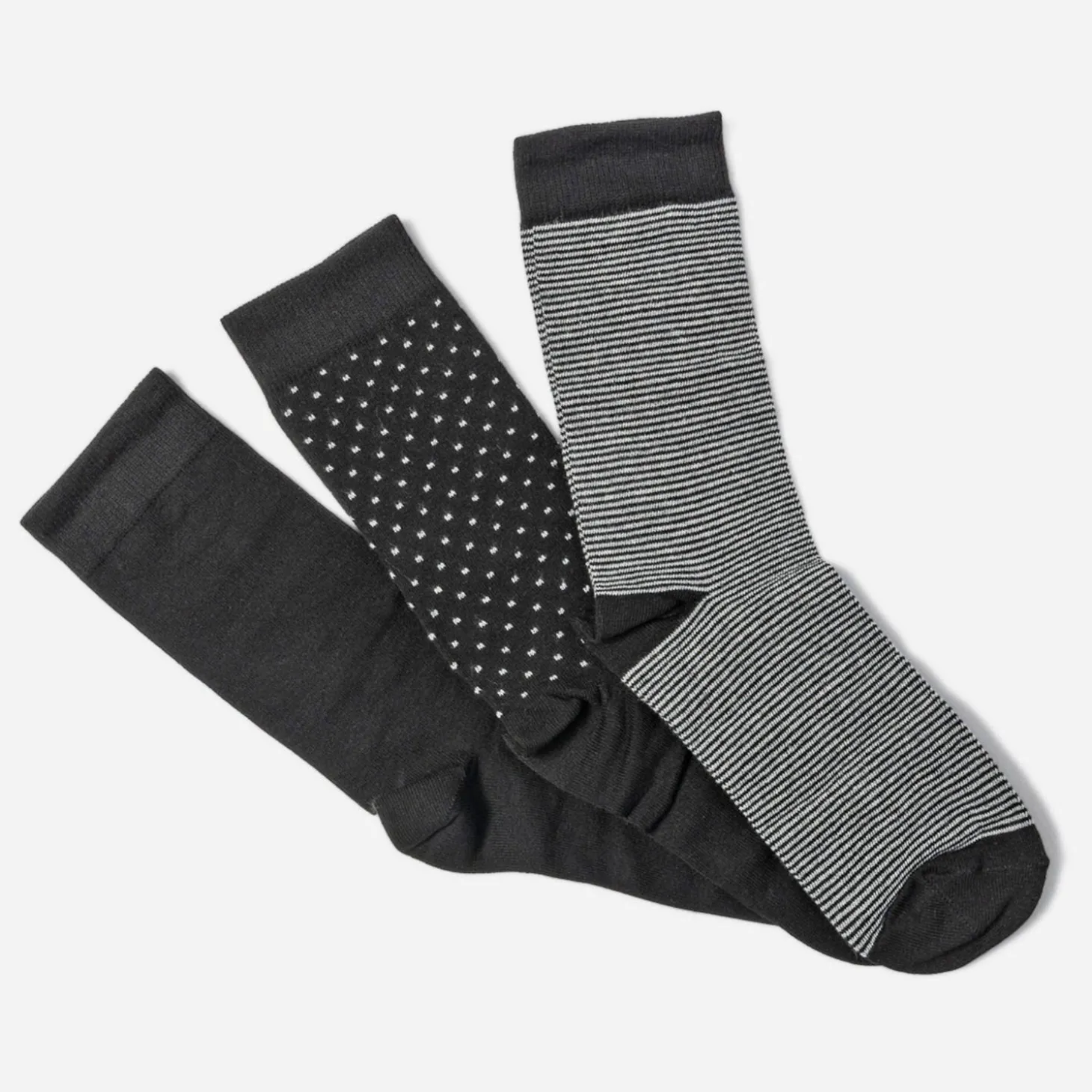 Des rayures pour l’une, du minimalisme ou de l’uni pour les autres, ces chaussettes pour homme bousculent la maille noire, de motifs mode intemporels. 3 paires indispensables au vestiaire homme, à réserver avec un look sobre et classique.