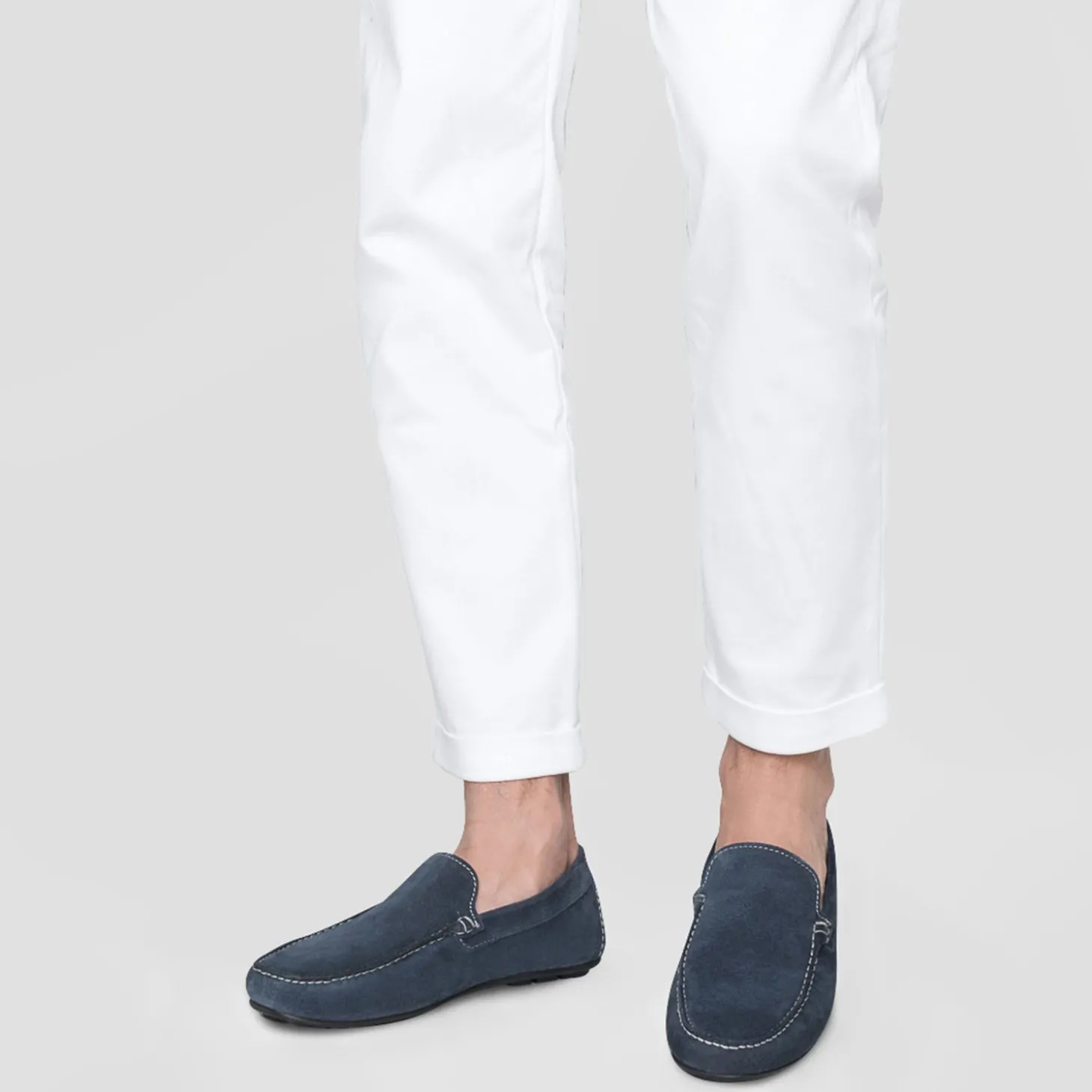 Le mocassin est devenu une chaussure incontournable de tous les dressings masculins. En croûte de cuir bleu, doublée de cuir de vachette, il se fait plus tendance que jamais. On aime sa semelle à picots, signature moderne et dans l’air du temps. Portez-le pieds nus, avec un pantalon chino camel à bas retournés et une chemise blanche, pour une allure casual chic digne des dandys.