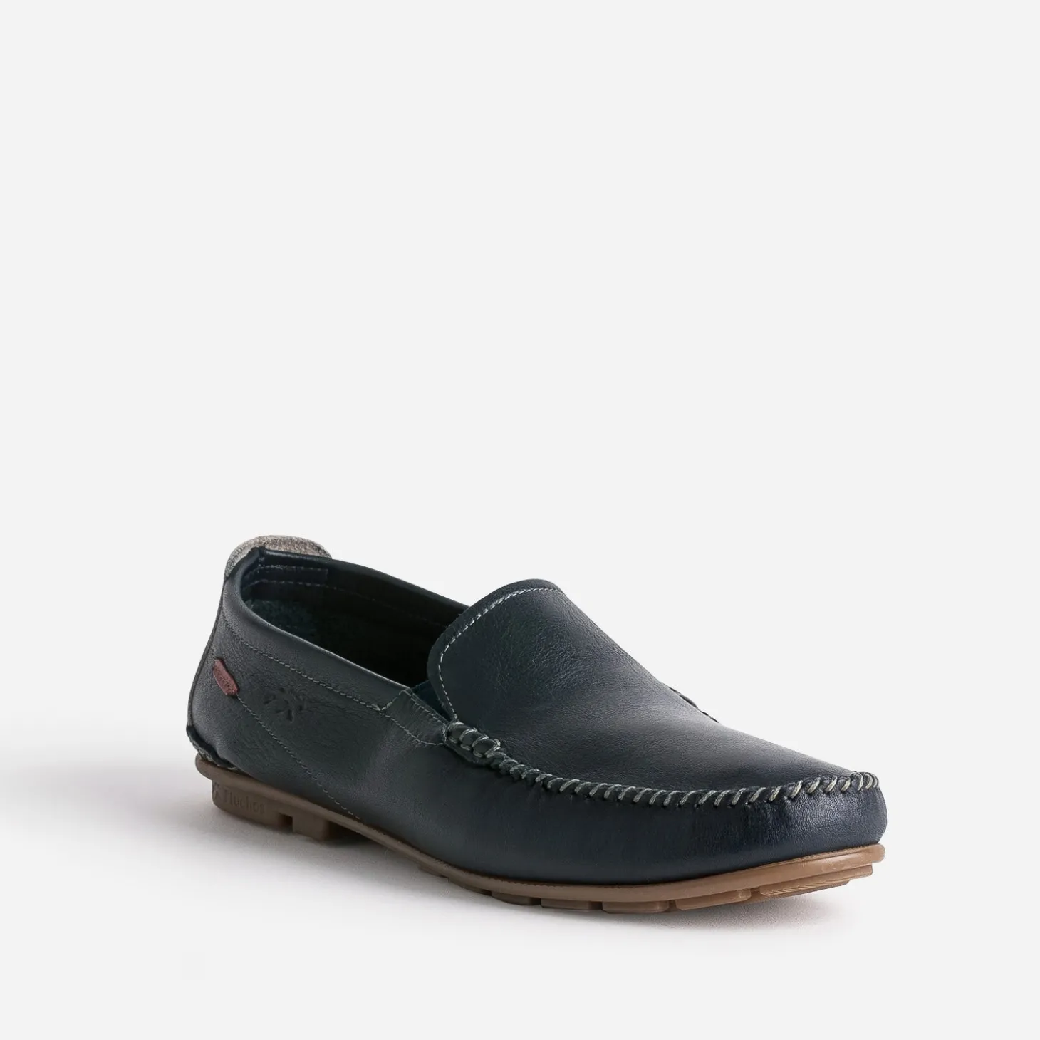 Ce slip-on pour homme se porte de préférence nu-pieds. En cuir bleu marine, non doublé, doté d’élastiques sur les côtés et d’une semelle intérieure amovible, il se démarque par une incroyable souplesse au porté. Un modèle à porter avec une chemise en lin écrue et un bermuda beige.