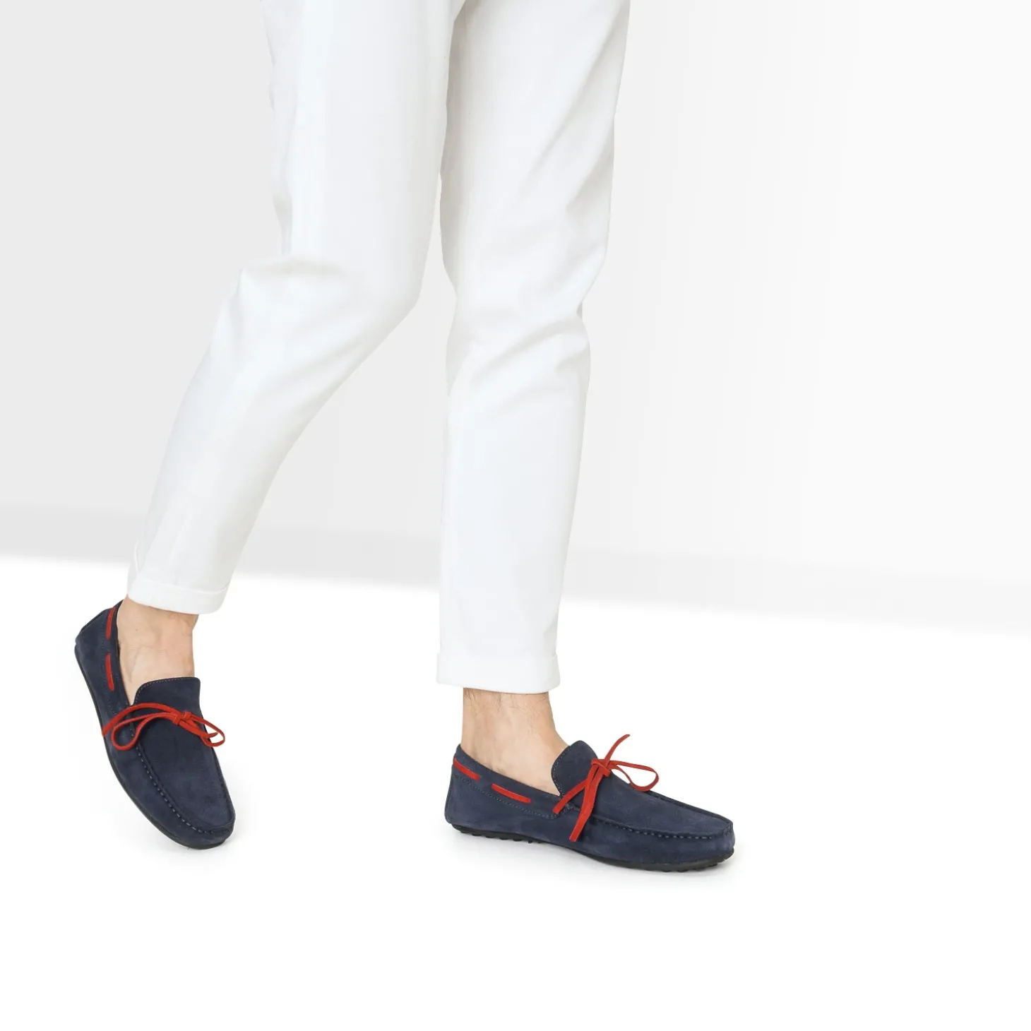 Voyez l’été en couleur ! Pour l’occasion, le mocassin homme s’autorise un sublime bleu marine, souligné d’un lacet rouge vif. Son confort et sa souplesse reconnus sont mis en valeur par un cuir velours et des finitions soignées. Préférez-le pied nu, avec une chemise blanche et un pantalon chino bleu.