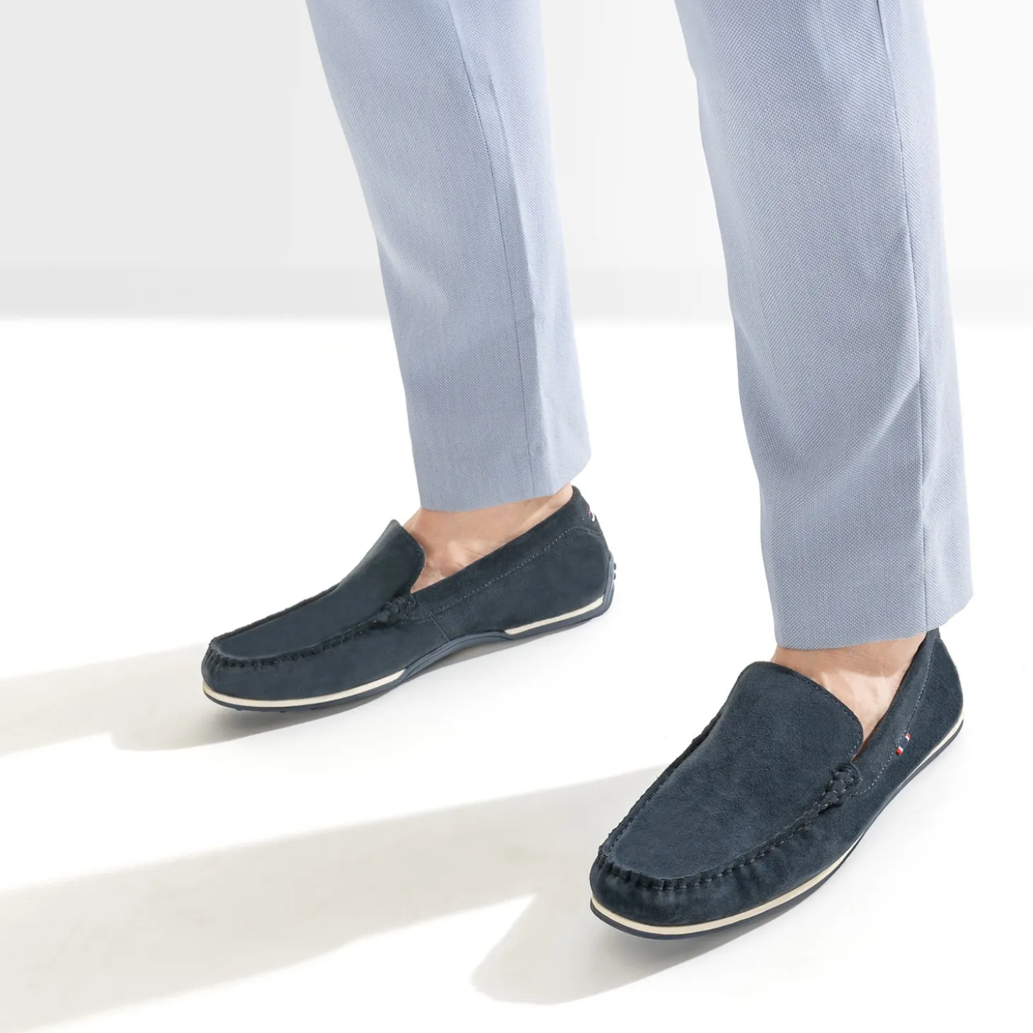 Le mocassin homme tient toujours une place de choix dans le shoesing estival. En cuir velours bleu marine, il présente un léger embossage strié, avec doublure et première en cuir. Il est monté sur une semelle antidérapante à picots, pour un confort et une adhérence absolue. Un modèle à associer avec les couleurs vives de l’été, comme le rose fluo, le bleu électrique ou le vert prairie.