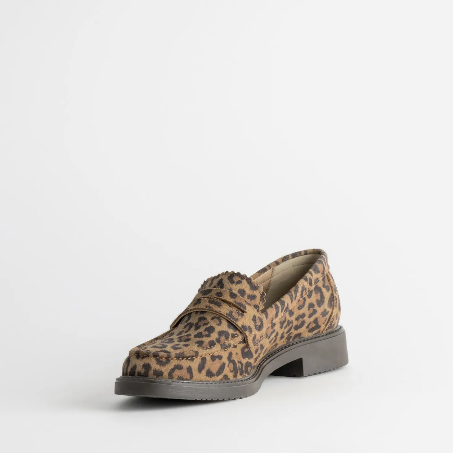 Mocassin marron cuir velours effet léopard