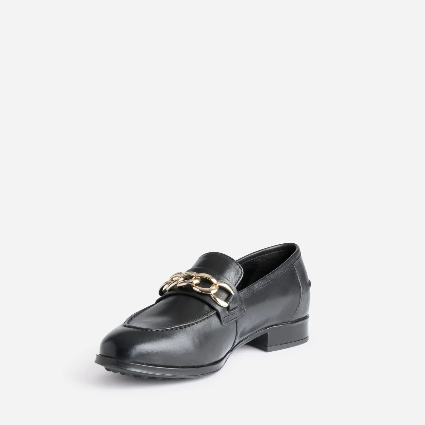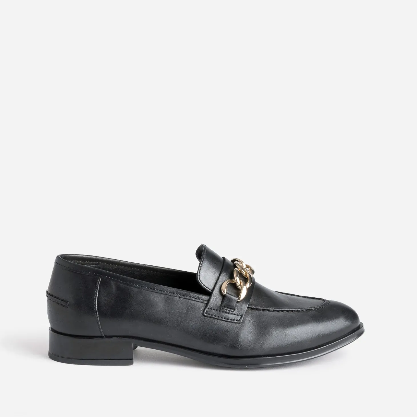 Mocassin noir en cuir à chaîne