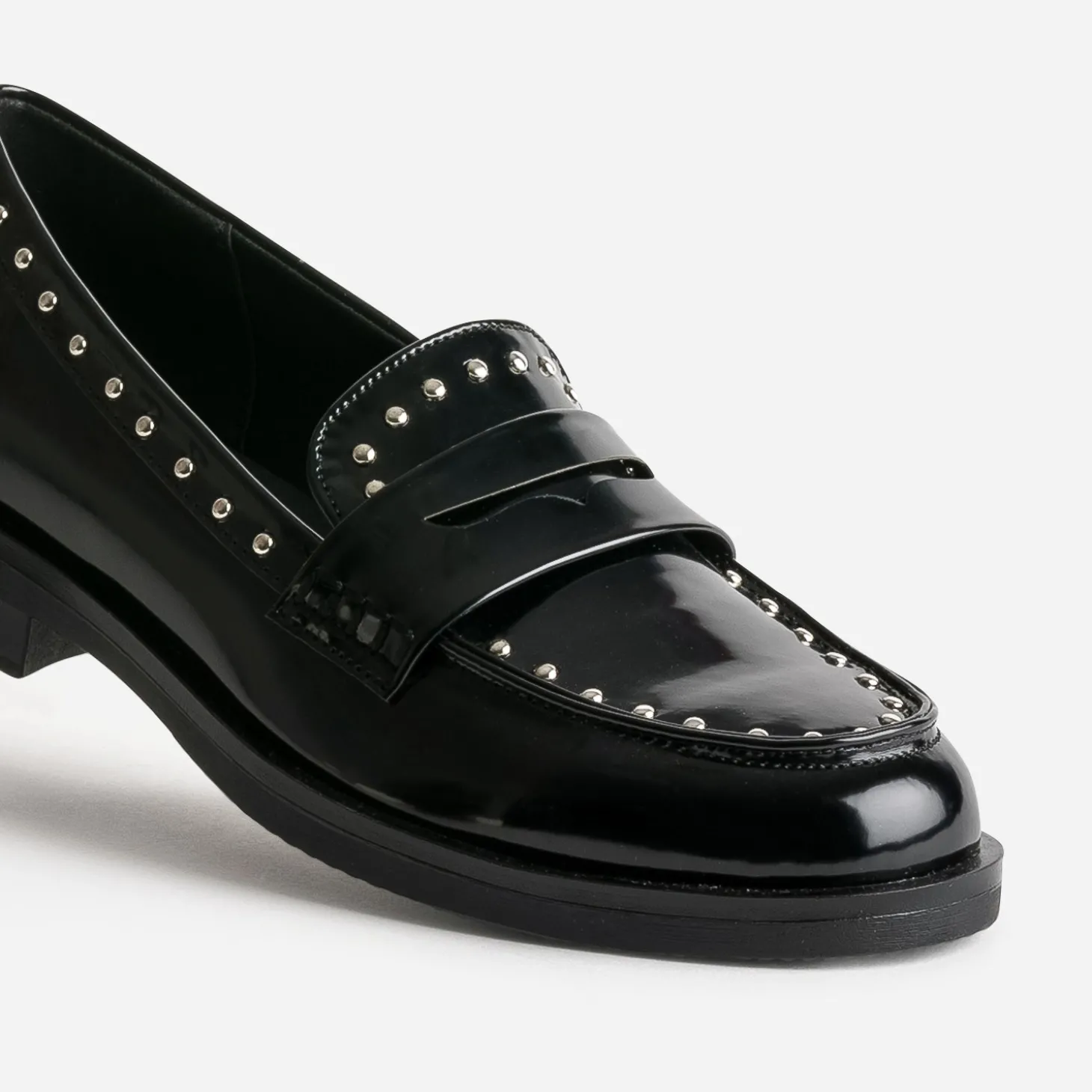 Mocassin noir verni clouté