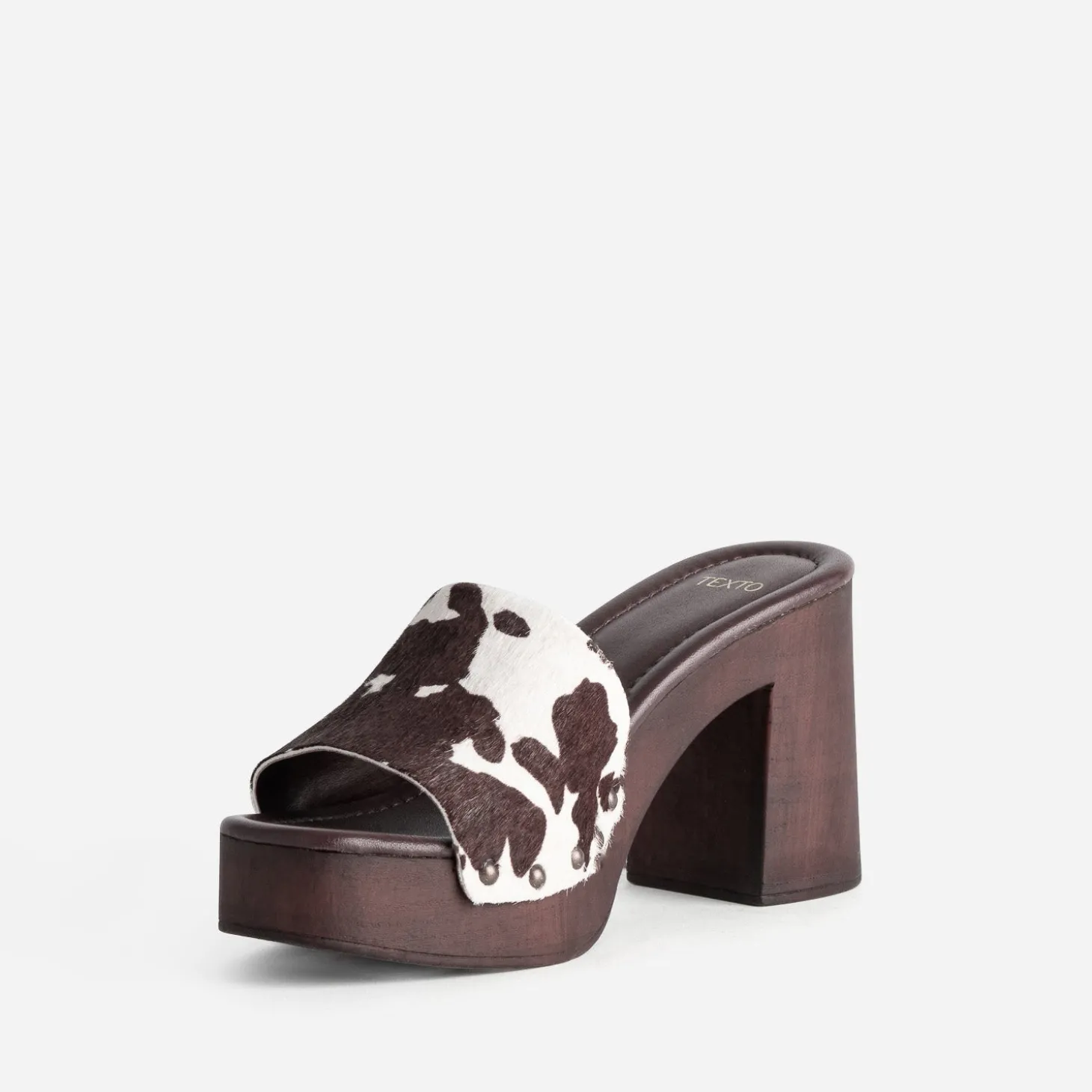 Mule à talon TEXTO marron motif vache