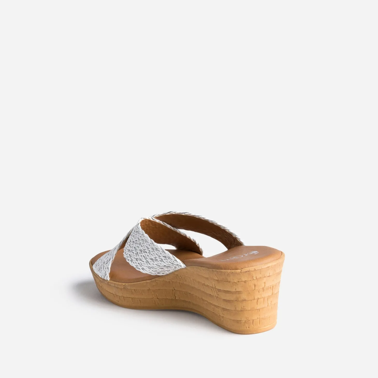 Soyez le premier à laisser votre avis sur “Mule compensée blanche à brides tressées argent” Annuler la réponse