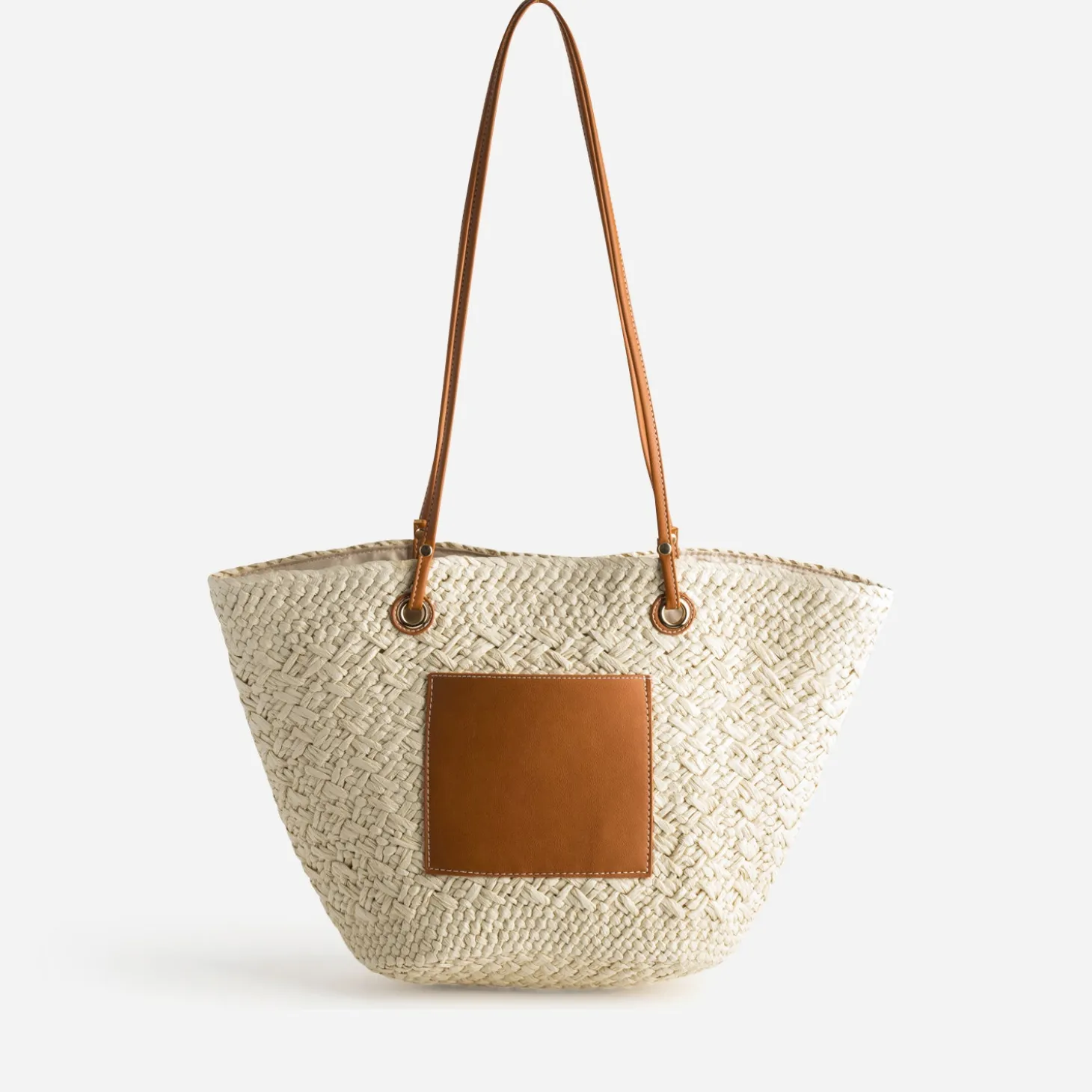 Le panier rime avec… été ! En papier beige tressé, il s’associe à une matière synthétique camel sur la poche externe et les anses ; de longes anses pour privilégier un porté sur l’épaule. Un accessoire aussi à l’aise au marché le matin qu’à la plage l’après-midi.