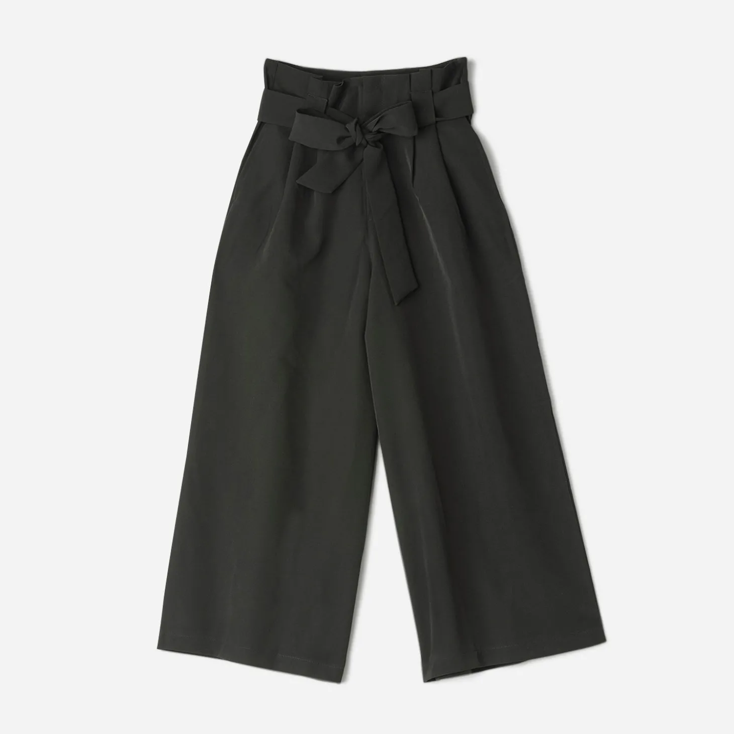 Volume large, longueur cropped, taille haute, 2 poches passepoilées côtés, jeux de plis à la taille, ceinture amovible, fermeture par zip et crochet.