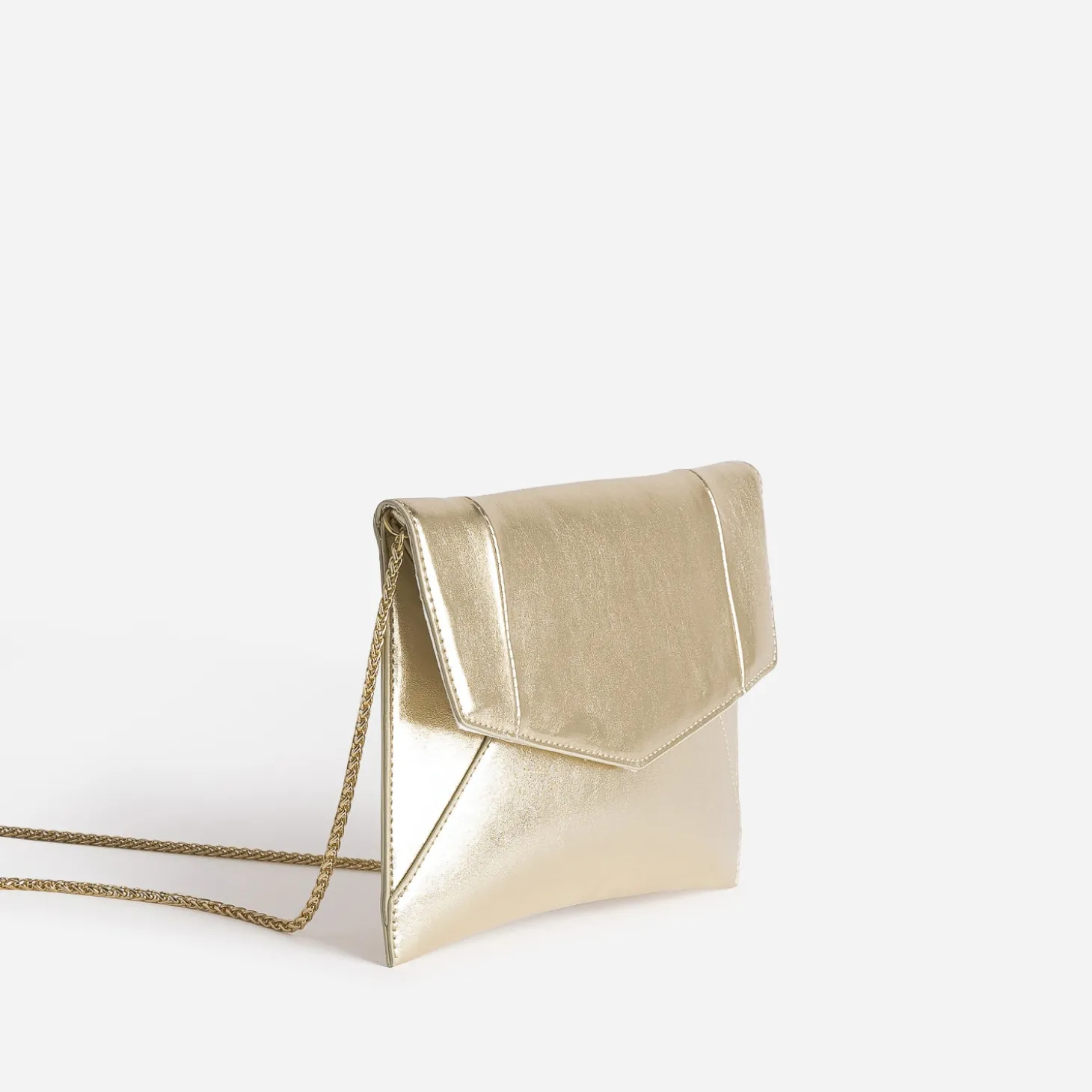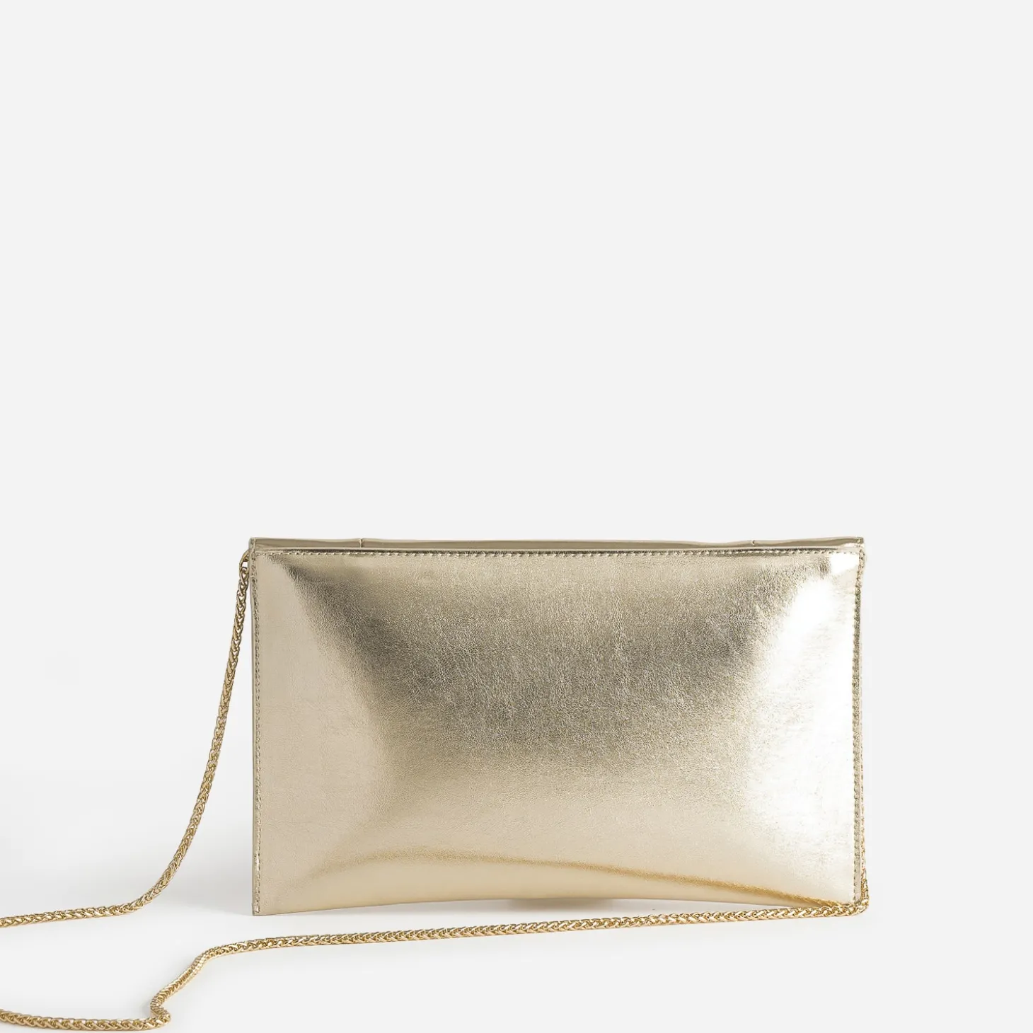 Les tenues de cérémonie impliquent le choix d’un sac raffiné. Le sac pochette format enveloppe est toujours une valeur sûre. En matière synthétique lisse, il se décline en coloris doré et finition métallisée, et se porte à la main, ou sur l’épaule ou croisé, grâce à une bandoulière-chaînette. Imaginez-la avec une robe longue bustier de couleur pastel, ou en soirée, avec une combi-pantalon noire.