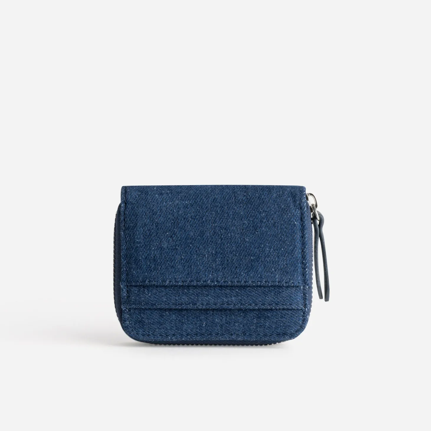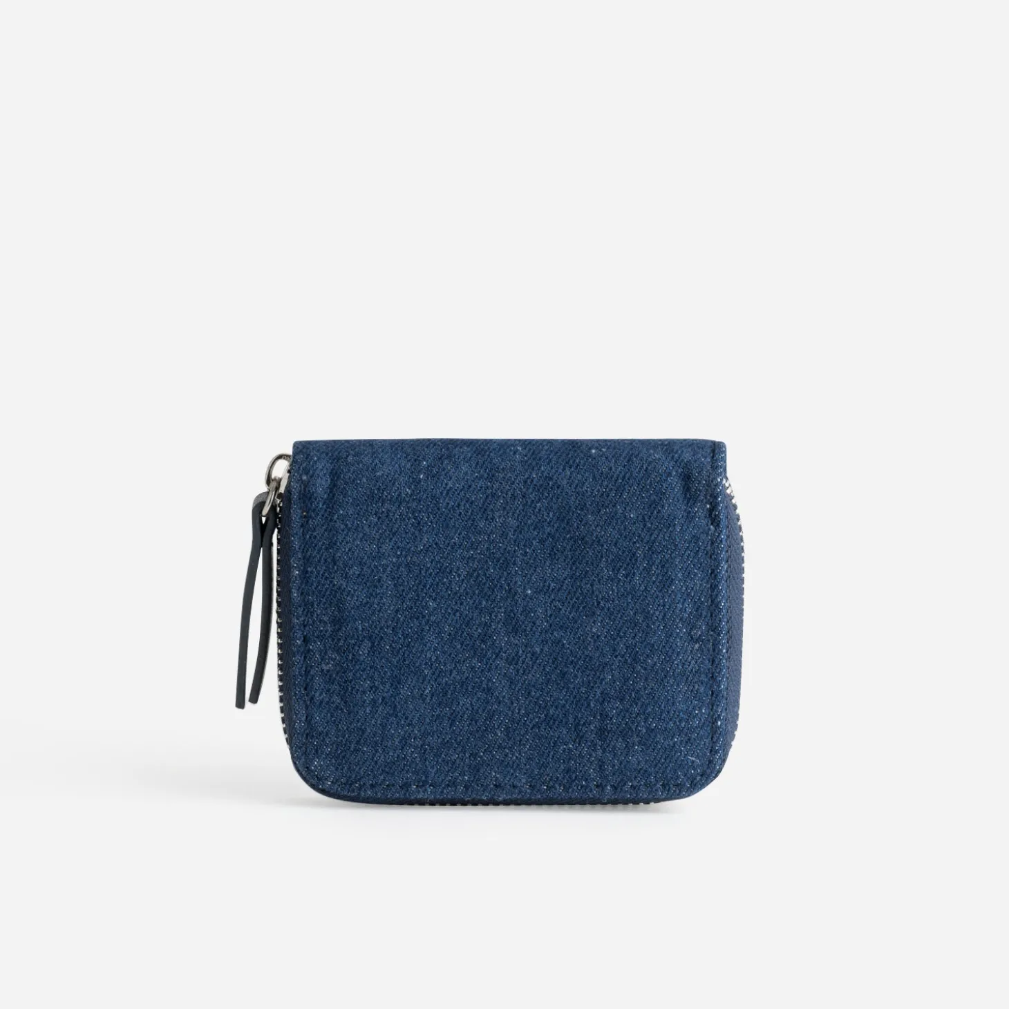 Mini-format pour ce porte-monnaie. En textile inspiration denim brut, il s’ouvre, par zip, sur deux compartiments, avec une poche intérieure zippée. Sur le devant, deux fentes accueillent les cartes (de transport, de crédit, de cantine). Un accessoire facile à glisser dans un sac à main, ou la poche d’une veste.