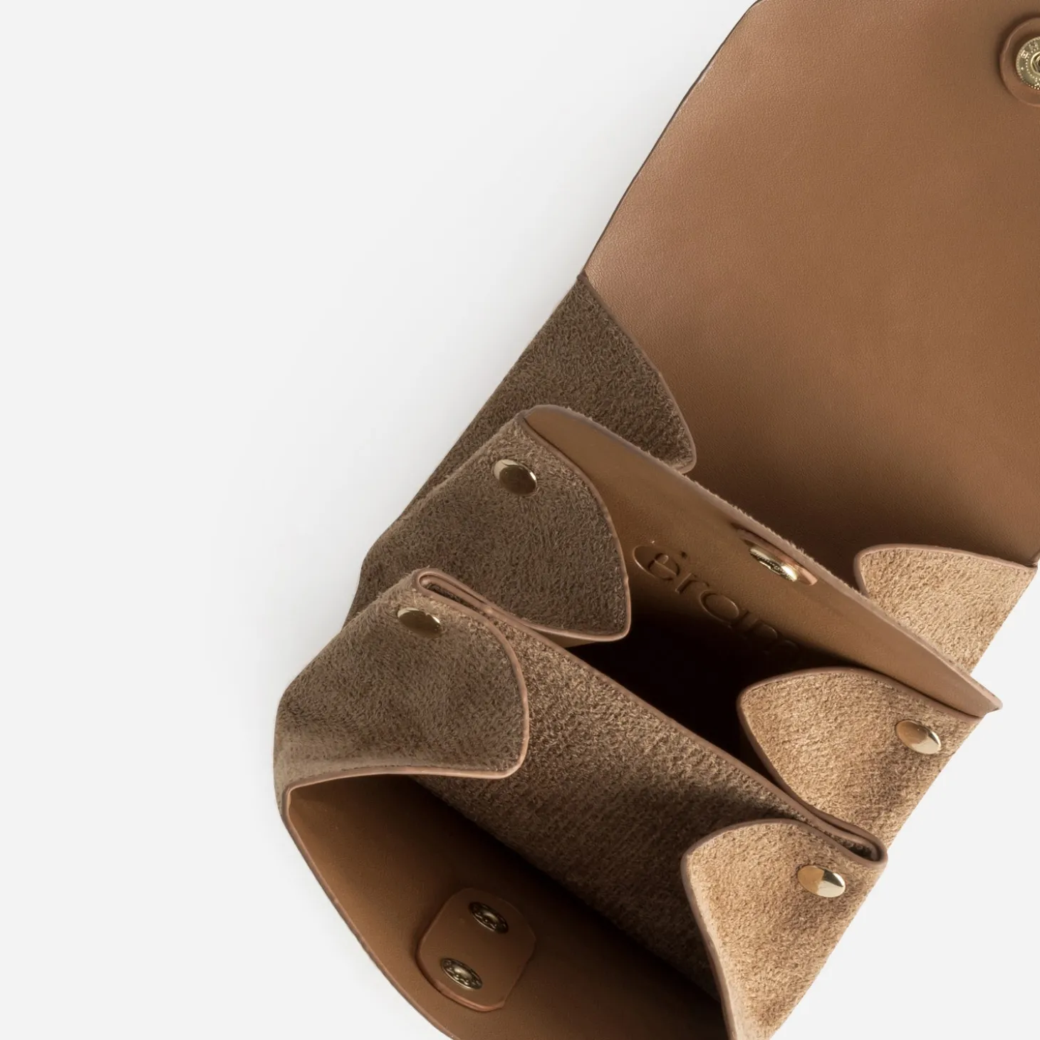 1, 2, 3 compartiments pour ce portefeuille de format mini, qui propose un rangement maxi ! En textile camel, à finition veloutéé, il s’ouvre sur un compartiment et un deuxième rabat, s’ouvrant lui-même sur deux autres compartiments. Monnaie, papiers, cartes, tout trouvera sa place, pour alléger votre quotidien.