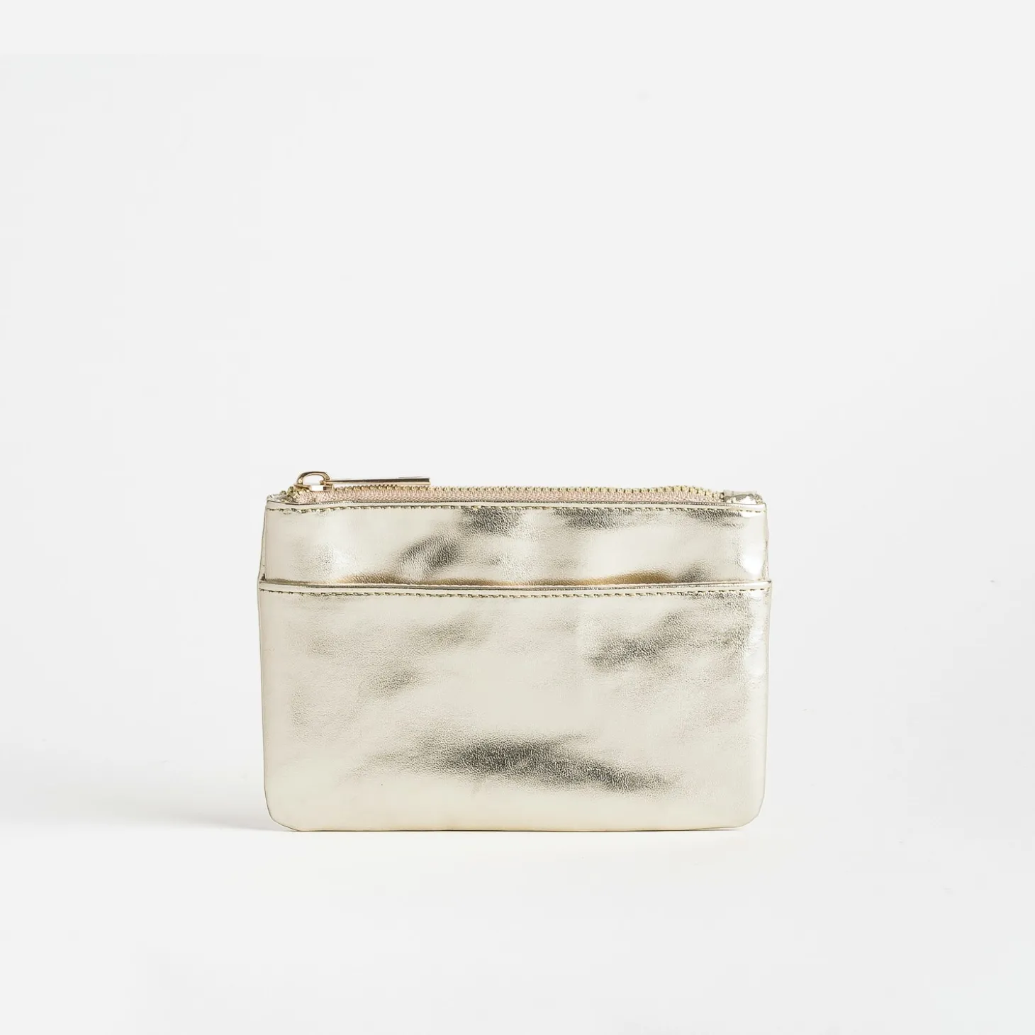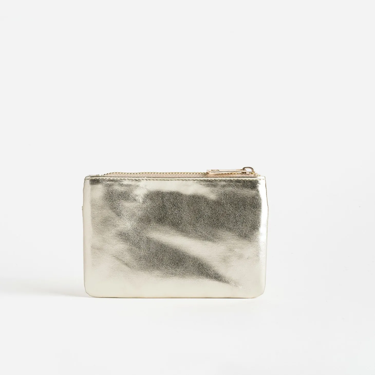 Une touche de doré dans votre sac à main. Une méthode simple pour faire briller le quotidien ! Faites l’essai avec ce porte-monnaie en matière synthétique lisse métallisée. Plat, il associe un compartiment zippé pour la monnaie à une poche externe pour les cartes.