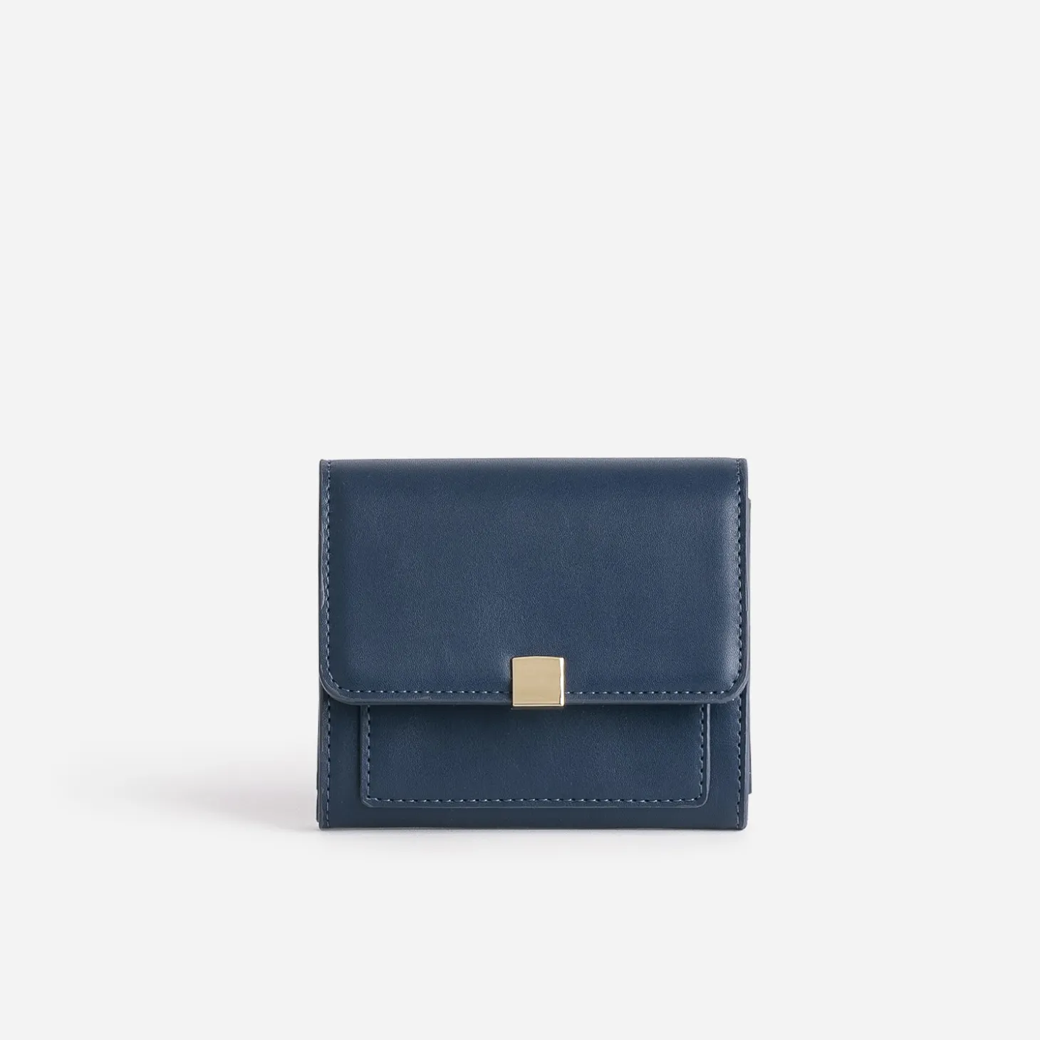 Ne vous fiez pas à son petit format. Poche zippée interne, poche plaquée externe, fentes pour cartes, ce porte-monnaie prend son rôle à cœur. En matière synthétique lisse, il se décline en coloris marine, sobre et intemporel.