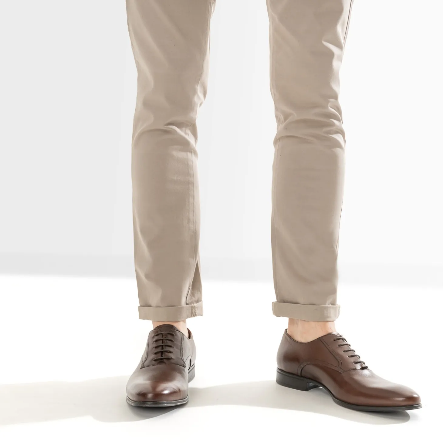Le Richelieu confirme son statut de soulier chic, par excellence. Essayez-le en cuir lisse, décliné en coloris marron foncé, fermé par un lacet ciré rond ton sur ton. Avec ? Costume vivement recommandé, marine ou gris foncé, et chemise blanche immaculée.