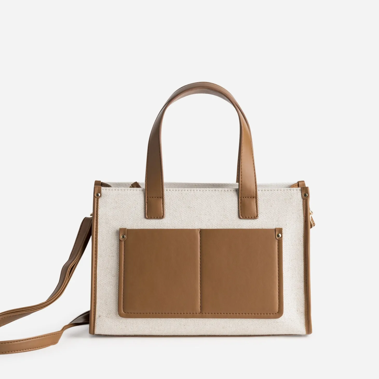 Sac à main bi-matière cognac et beige