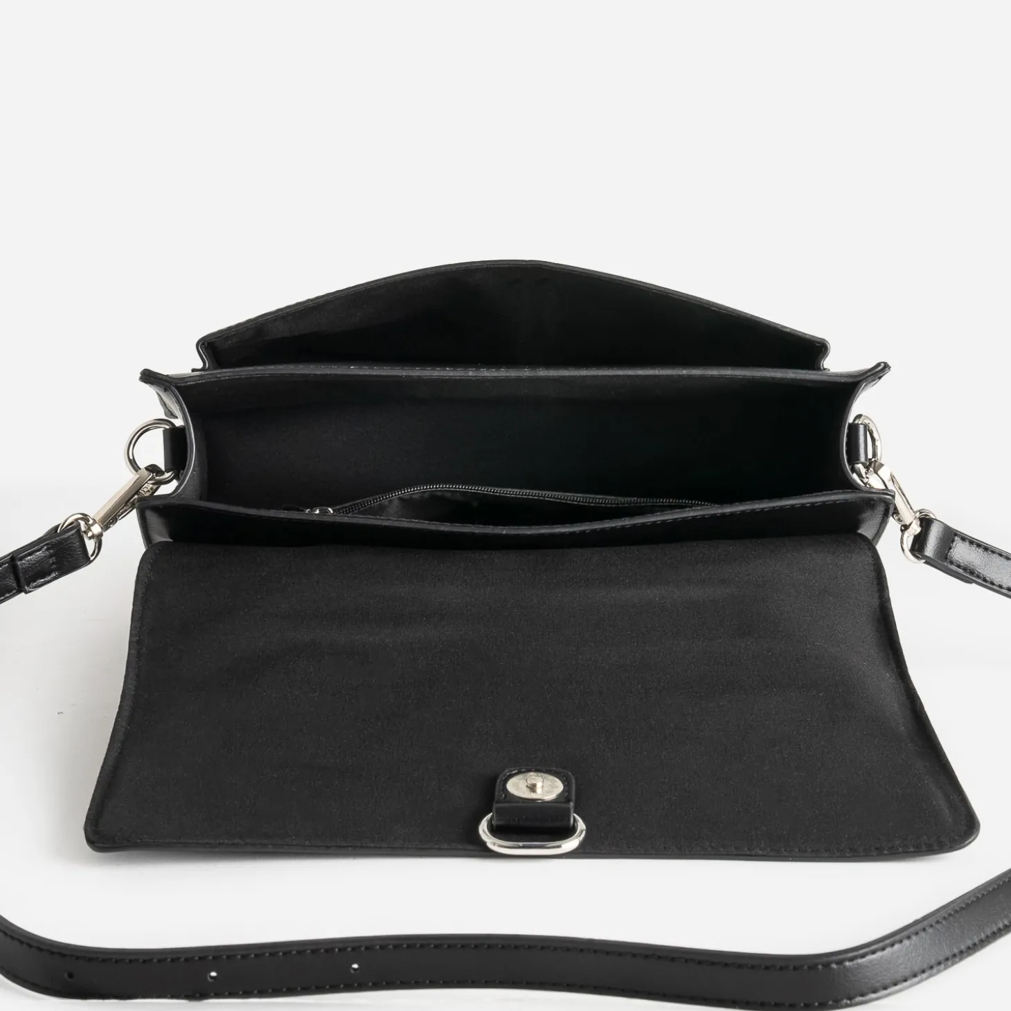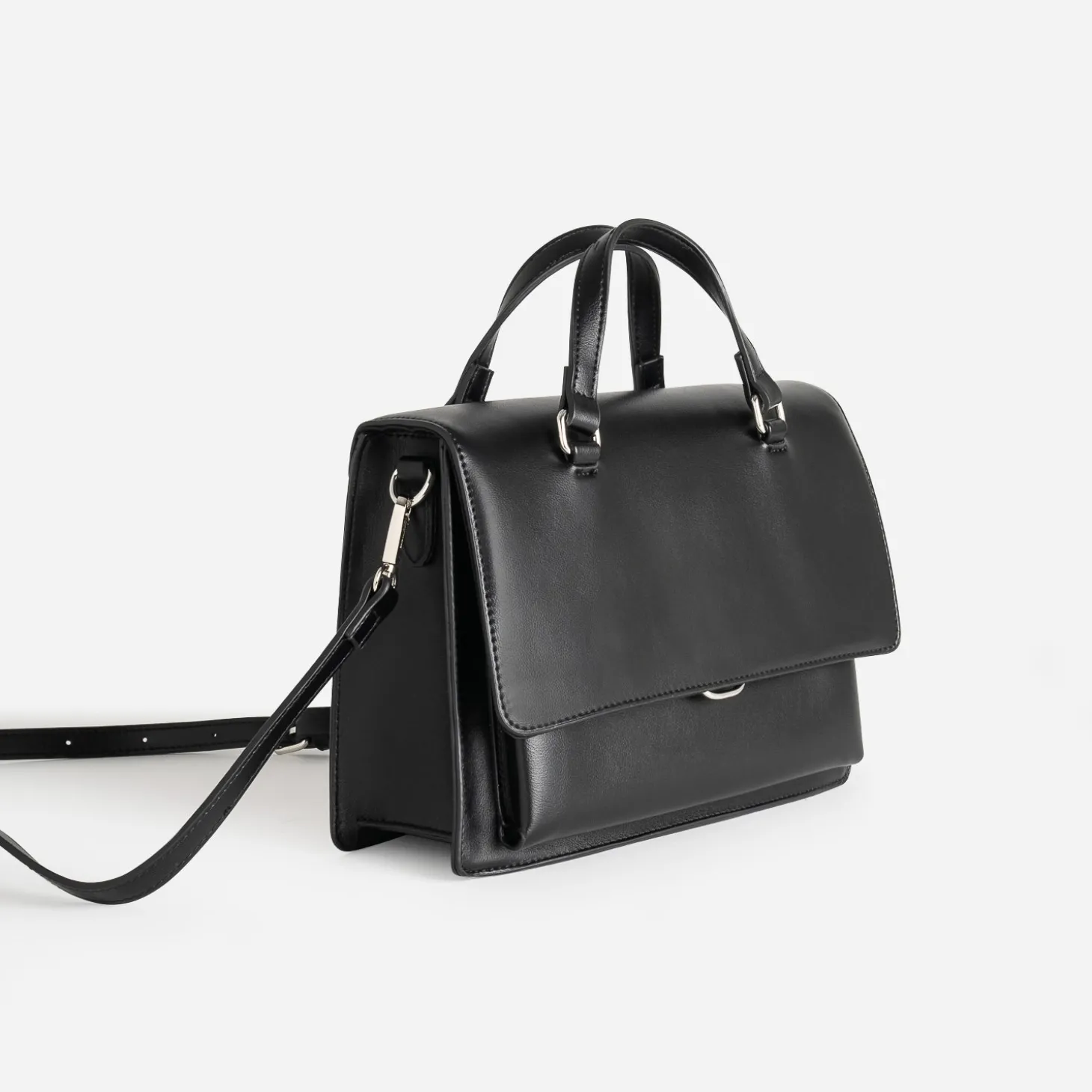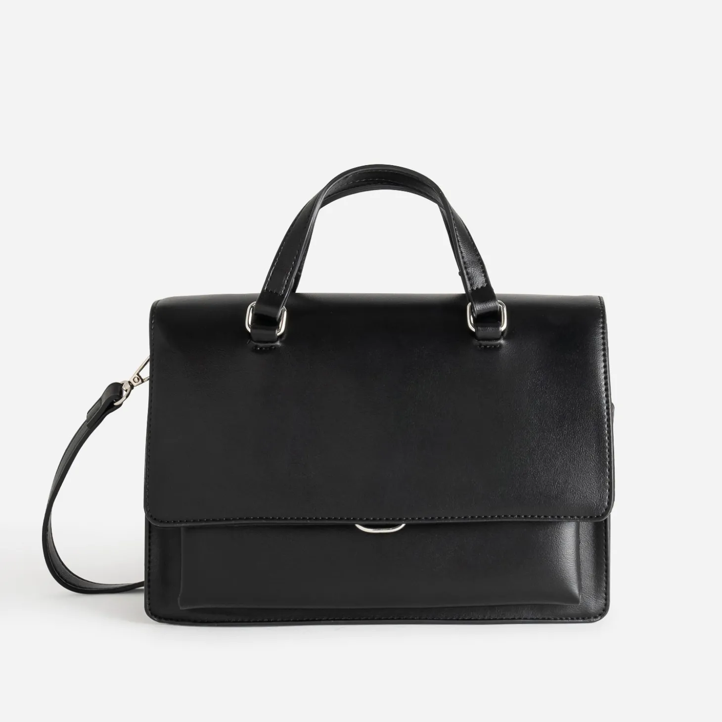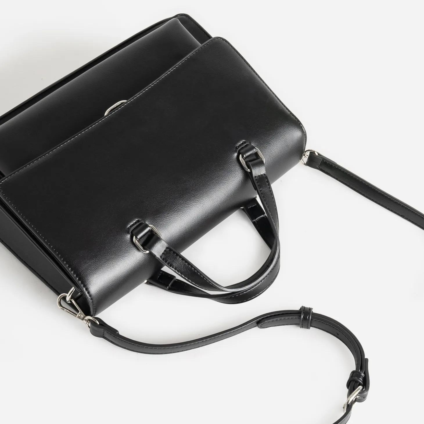Porté à la main ou sur l’épaule ? Posé sur l’avant-bras ou croisé ? Votre indécision est notre moteur, pour donner naissance un sac à main qui s’adapte parfaitement à votre quotidien. Appréciez son format moyen, sa matière synthétique rigide sur un design épuré, son coloris noir, qui matche avec tout, sans effort. Longue bandoulière en journée ou anses courtes en soirée, un modèle pensé pour devenir votre allié.