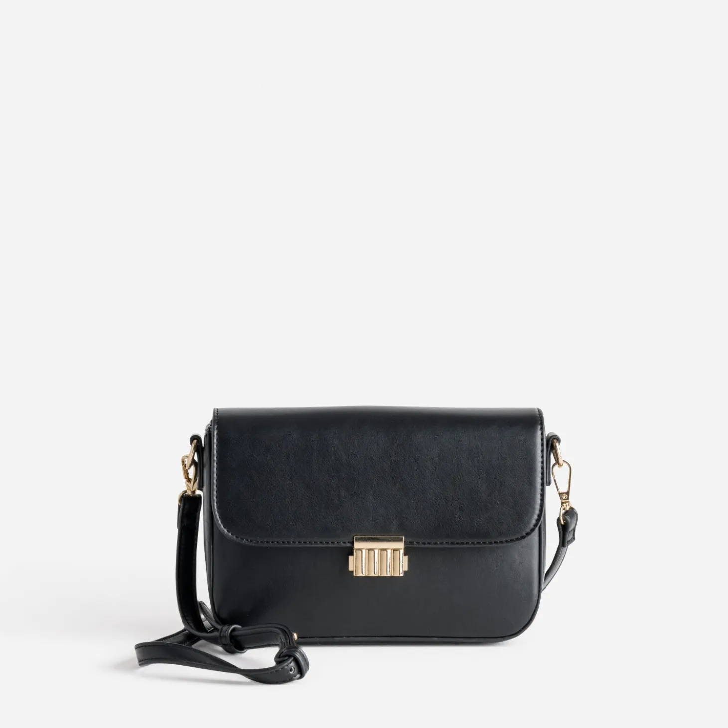 La recherche DU sac à main parfait s’arrête ici. En matière synthétique lisse, coloris noir, forme rectangulaire rigide, il tient la tête de liste des accessoires de maroquinerie indispensables au quotidien. Il est rehaussé de métalleries dorées, jusqu’au fermoir fantaisie. Le compartiment principal est doté de deux poches internes, dont une zippée, et d’une poche externe zippée à l’emplacement discret. Il se porte sur l’épaule ou croisé, grâce à la bandoulière réglable et amovible. Un modèle pensé pour durer, qu’importe la saison, les tendances, les envies.