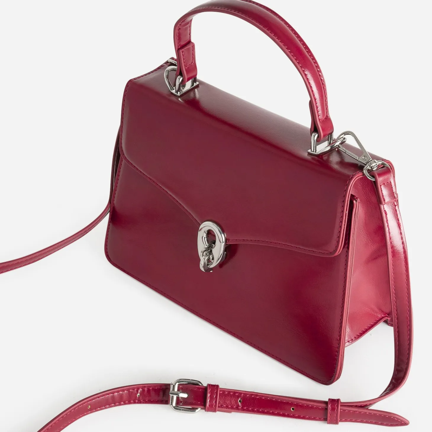 Le sac à main rouge s’impose comme la garantie d’une signature chic et moderne, en toutes saisons. En matière synthétique à peine reliefée, il se décline dans une variation foncée. Appréciez son format trapèze, composé d’un grand compartiment avec trois poches internes et une poche externe. Il est finalisé par des métalleries grises et se ferme par un système de clip. Il se porte à la main, grâce à une poignée, ou sur l’épaule ou croisé sur le buste, grâce à une bandoulière réglable et amovible. Un modèle qui prend tout son sens avec une chemise blanche, un pull bordeaux et un jean noir, ou même, un pull noir et un jean à motif léopard.