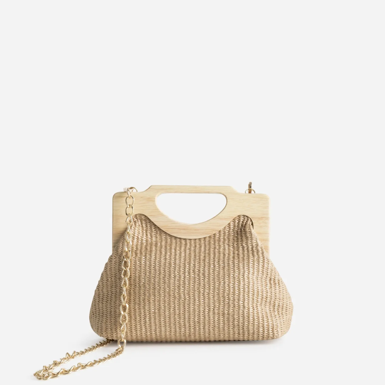 Sac à main TEXTO beige anses bois