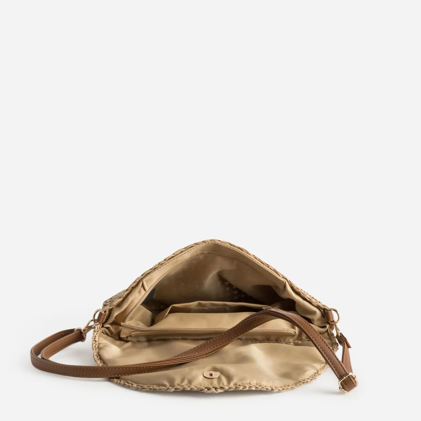 Une forme arrondie. Une matière, toute en légèreté. Un jeu de tressage étudié. Une large patte en matière synthétique brodée. Le sac à main passe en mode estival. La bandoulière amovible et réglable, permet un porté sur l’épaule ou croisé. Un modèle à préférer avec un look décontracté, débardeur, short en jean et long kimono imprimé.