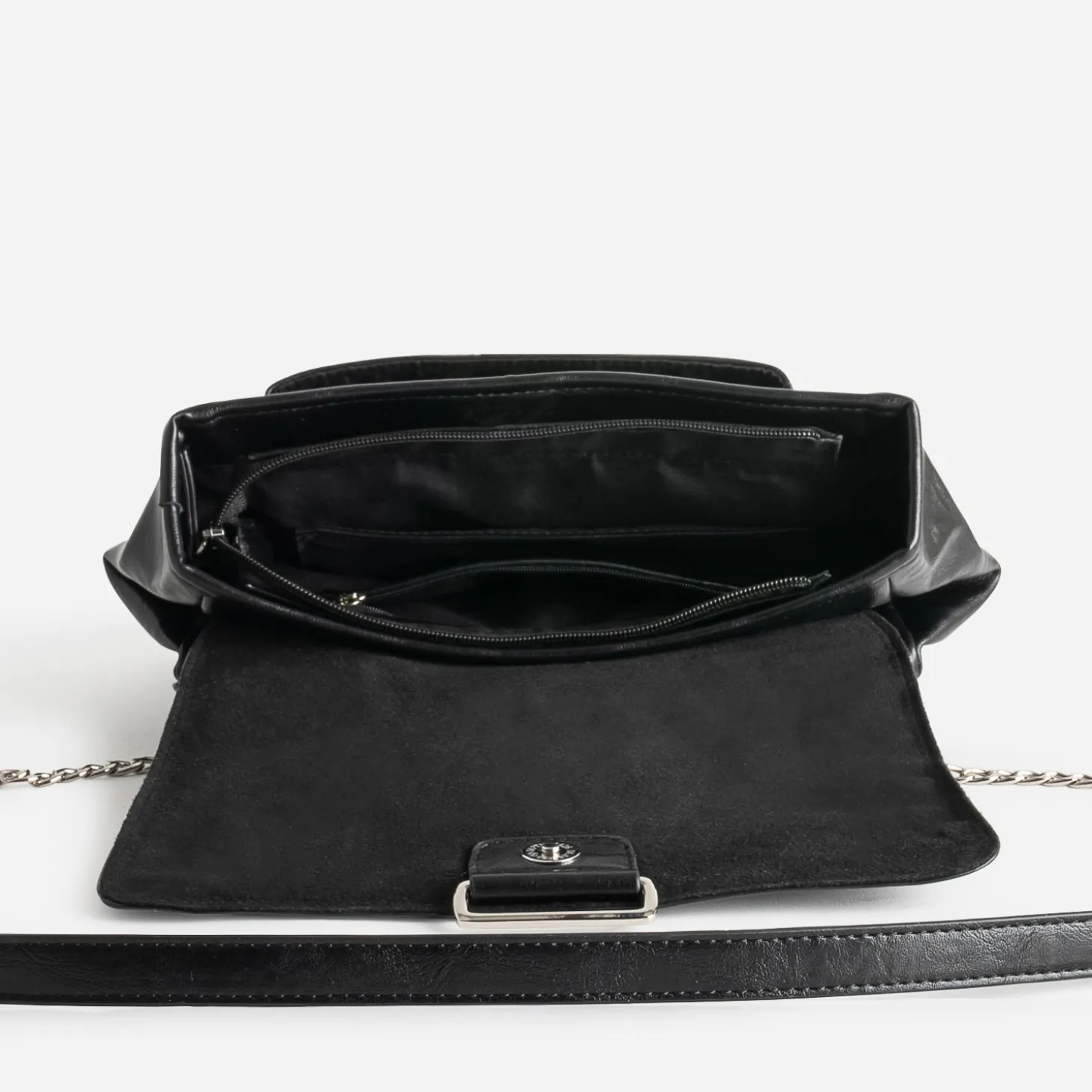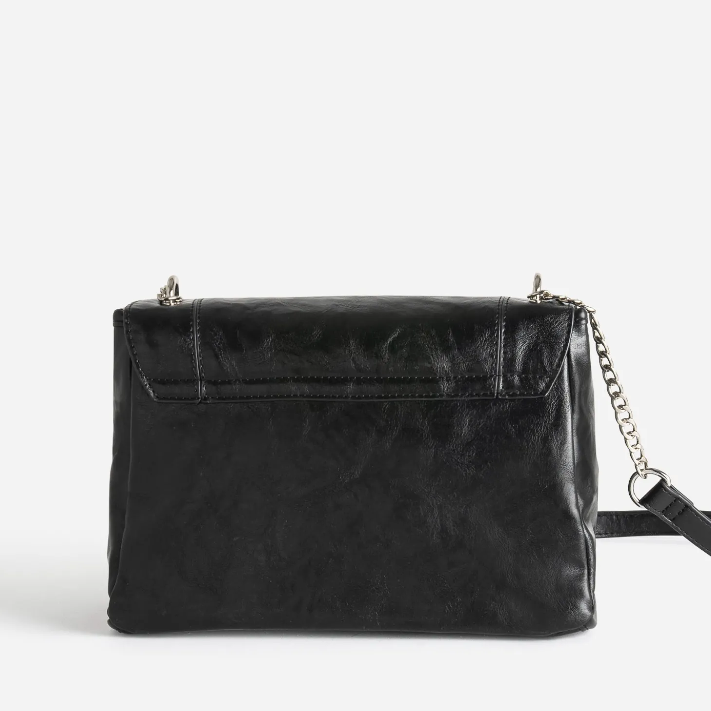 Effet patiné et finition glacée pour ce sac à main noir pour femme. Sa matière synthétique séduit par son incroyable souplesse et sa douceur au toucher et les métalleries argentées apportent une touche rock maîtrisée. A l’intérieur, le compartiment principal est doté de 2 poches internes, dont 1 zippée, et d’1 poche externe. Son format, ni trop petit ni trop grand, est idéal pour le quotidien. Un modèle qui s’adapte à votre uniforme du moment : blazer, jean slim enduit, boots à talon.