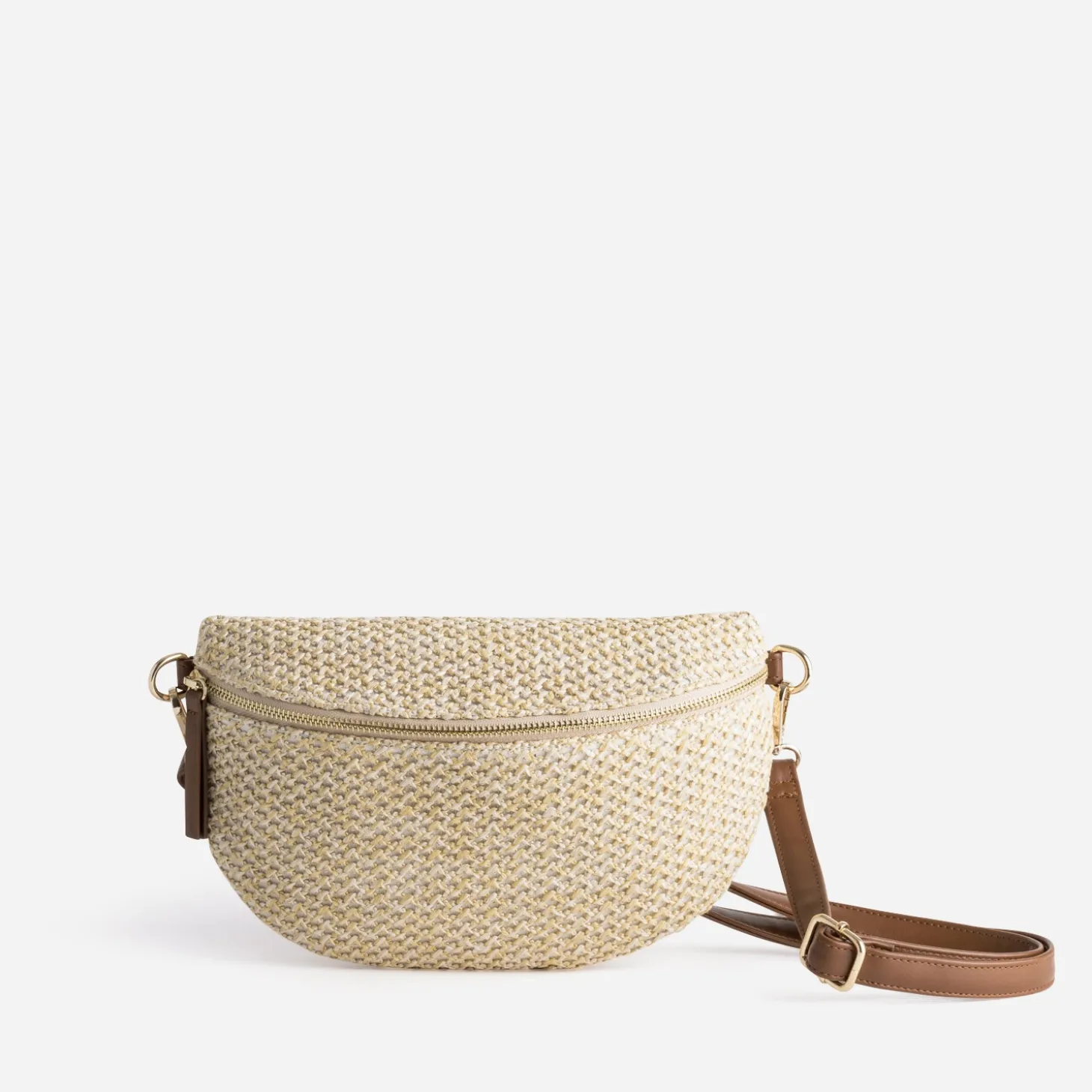 Sac-banane beige tressé et marron
