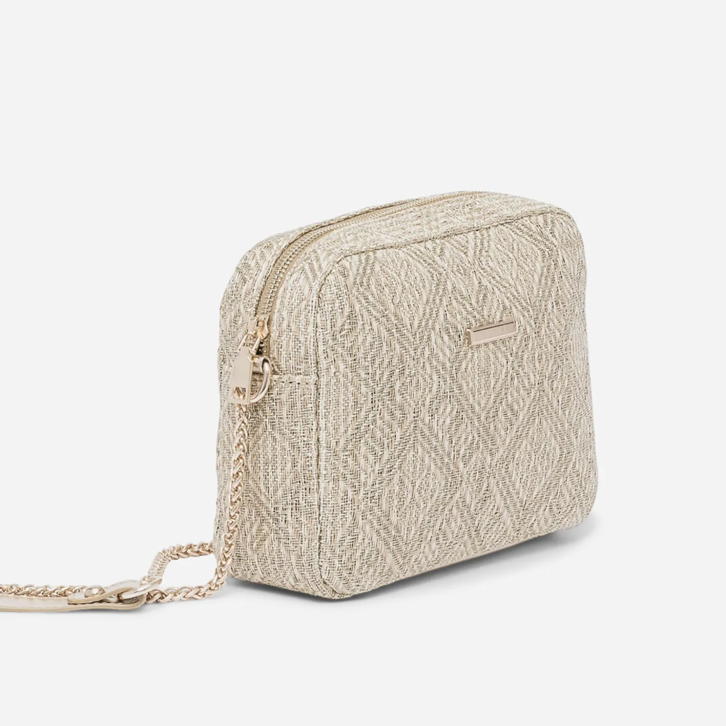 Ethnique et chic, c’est la définition du style de ce sac à main pour femme. Tressage beige rehaussé de fils dorés s’associent dans une parfaite harmonie. La bandoulière-chaînette apporte un côté glam’. Un modèle à porter sur l’épaule ou croisé, avec une tenue habillée.