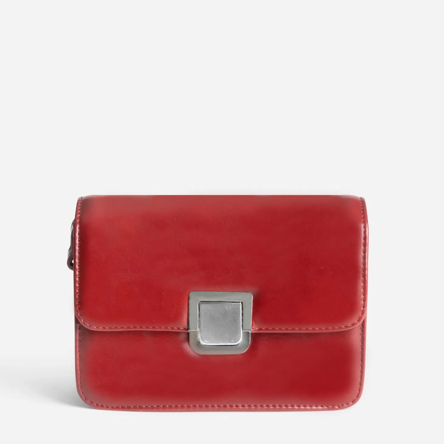 Qui dit rentrée, dit nouveau sac (à main) ! En matière synthétique rigide, il se décline en coloris rouge foncé. Son format rectangulaire assure un porté élégant, sur l’épaule ou croisé, grâce à la bandoulière réglable (non amovible). Le rabat se ferme par un système de clip-cartable fantaisie (appuyez vers le bas pour libérer le rabat). Un accessoire à privilégier avec un pull-chaussette rouge foncé à col roulé sur un jean large gris, avec des boots esprit rétro.