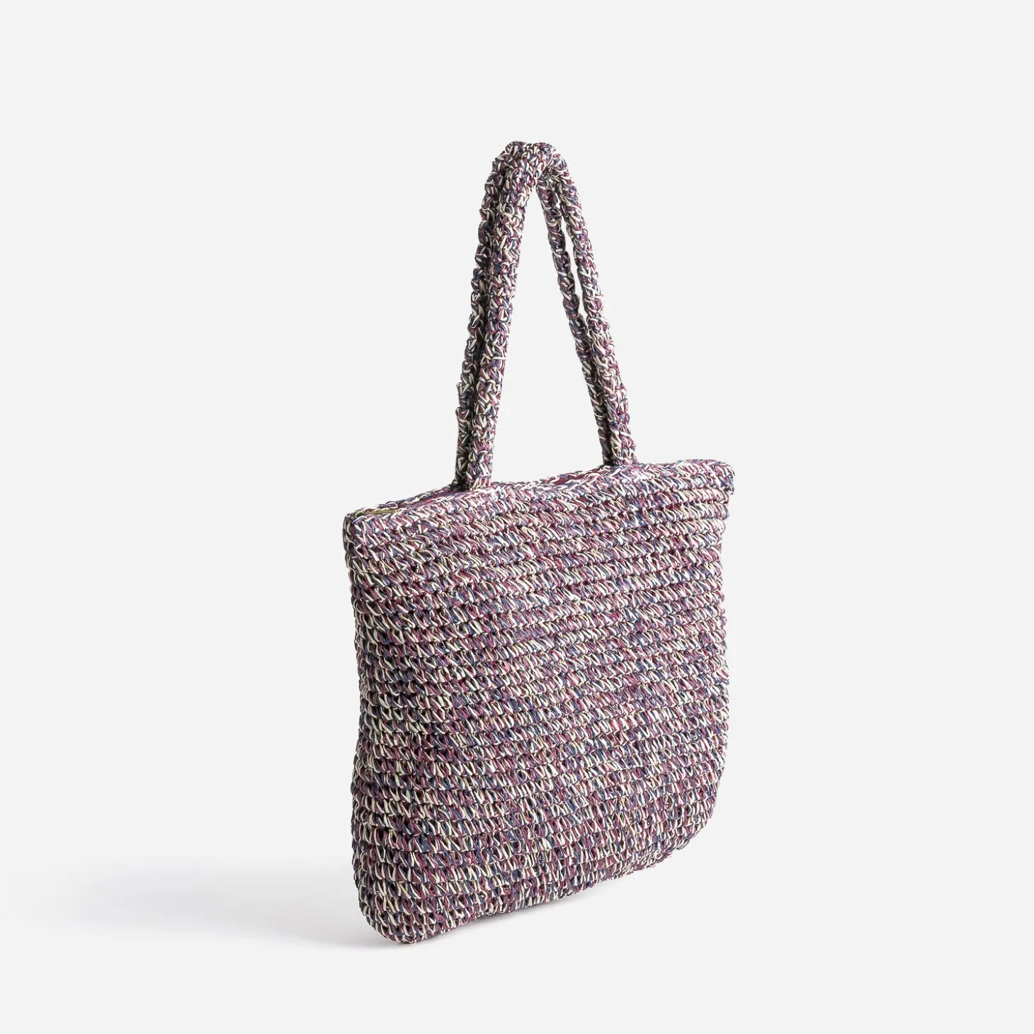 On connait par cœur le trio bleu, blanc, rouge. Découvrez le trio marine, écru, prune, plus mode. Il investit le sac de l’été, dans une version cabas, en papier tressé et doublé.
