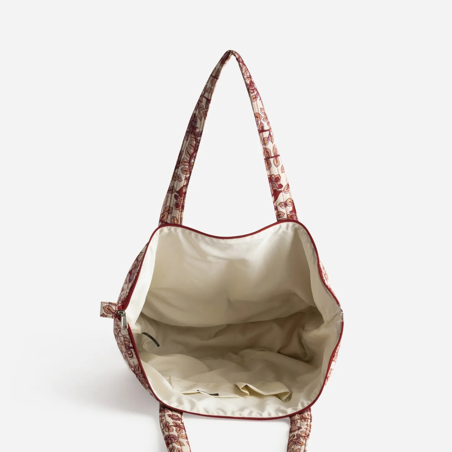 Sac cabas TEXTO beige motif floral rouge