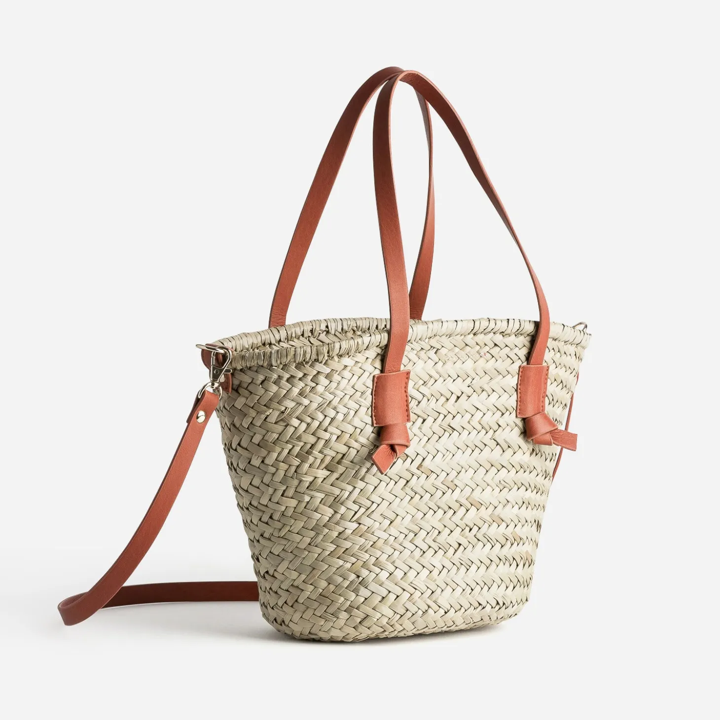 Essentiel mode ultime des beaux jours, le sac pour femme devient panier, dévoilant de multiples variations. En paille naturelle, il séduit par son tressage régulier, rehaussé de anses en matière synthétique orange, pour un porté à la main ou sur l’avant-bras. Il est livré avec une bandoulière assortie, réglable et amovible, pour un porté épaule ou croisé. Un it-bag à emporter avec soi tout l’été : à la plage, au marché, en bateau…