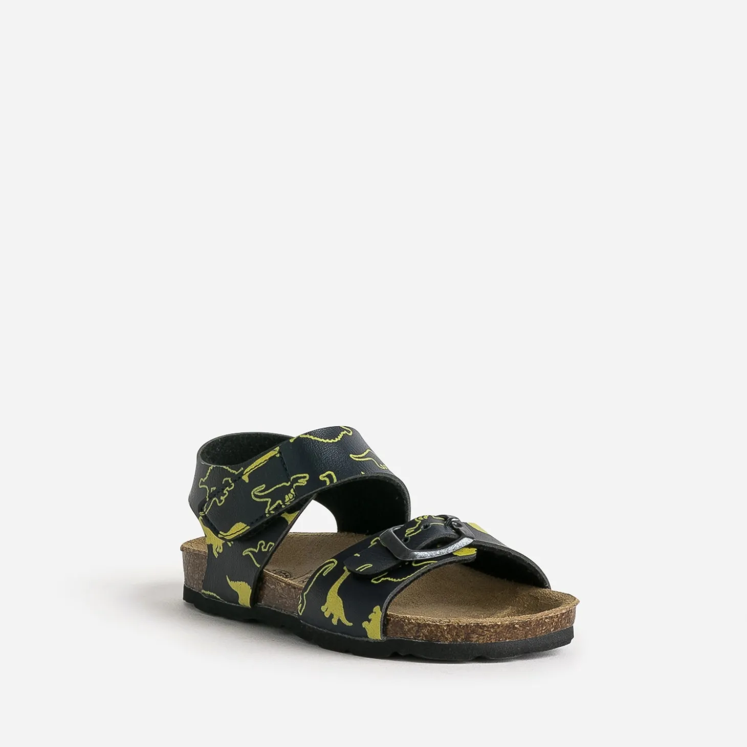 Confortable et toujours stylée, la sandale anatomique a fait ses preuves depuis longtemps. Modernisée par une matière synthétique lisse bleu marine, elle s’anime de motifs dinosaures jaunes. Elle se ferme par un scratch et une boucle, pour faciliter l’autonomie des plus petits et s’ajuster au pied, sans contraintes. Un modèle idéal au quotidien, avec une tenue décontractée dans les tons bleus. Tyrex, diplodocus et autres stégosaures n’ont qu’à bien se tenir !