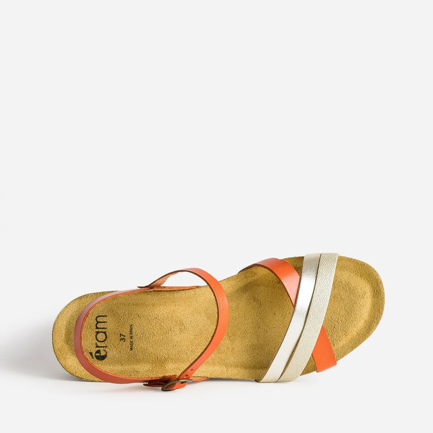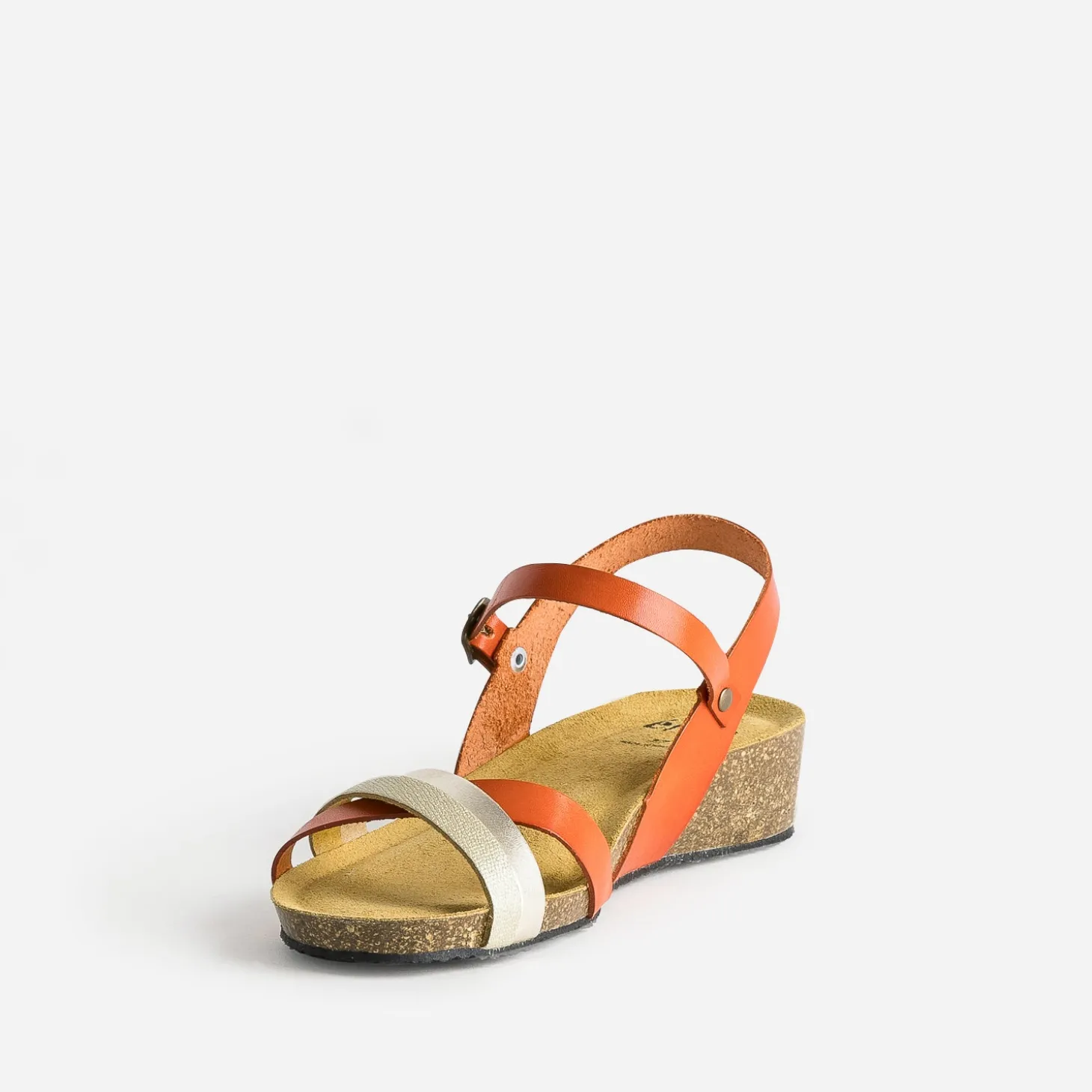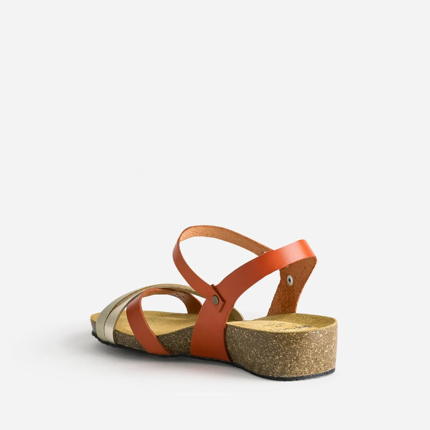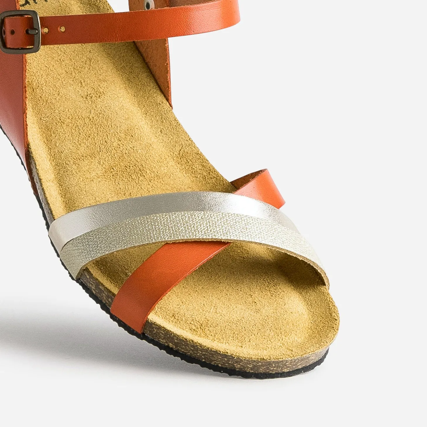 L’atout de cette sandale pour femme, c’est sa sandale anatomique en cuir velours, reconnue pour son confort et sa douceur pour la plante du pied. Dessus, les brides en cuir alternent entre un orange foncé et du doré, lisse ou embossée. Un modèle au style décontracté, à renforcer avec un tee-shirt jaune pastel et un jean mom gris.
