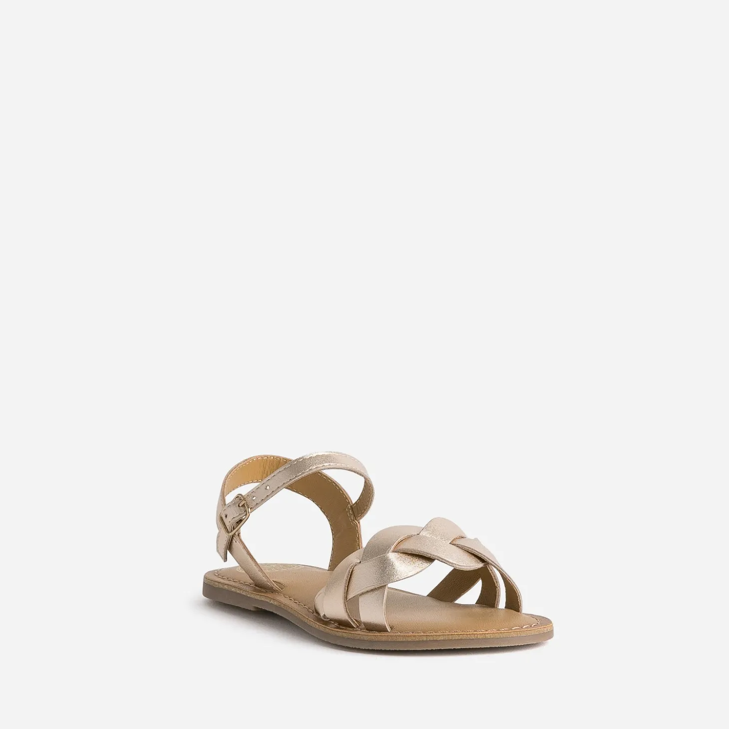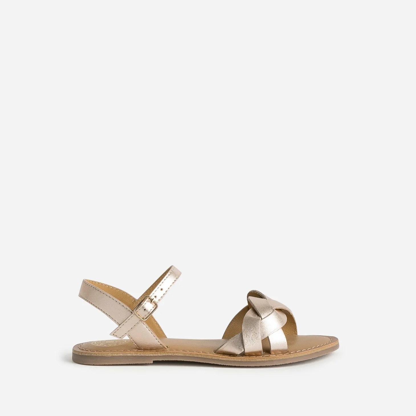 Inspirée d’un modèle de la collection femme, cette sandale fille mise sur une sobriété chic. En cuir lisse, elle est reconnaissable à ses deux brides tressées sur le bout du pied. Cette saison, elle opte pour un coloris rose doré inédit. Essayez-la en version mini, pour une prochaine cérémonie.