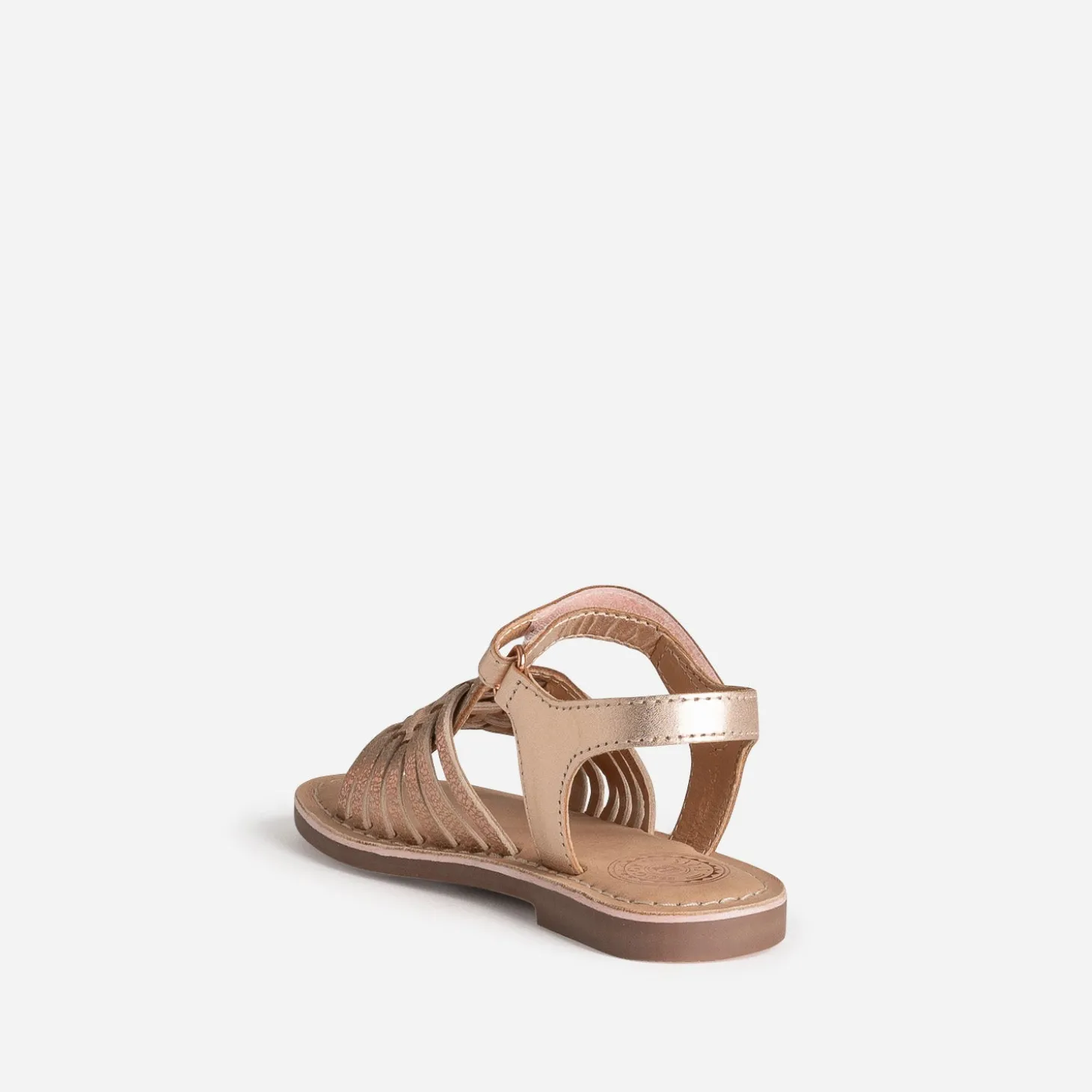 Concentré de style et de confort pour cette sandale pour petite fille. Le cuir métallisé rose cuivré s’invite sur les brides, qui s’offrent un tressage subtil sur le dessus du pied. Grâce à la fermeture par scratch, l’ajustement est simple et précis, même avec de petites mains. Un modèle polyvalent qui se marie à merveille avec une robe de cérémonie pastel pour un look élégant, ou avec un combi-short pour un style plus décontracté.