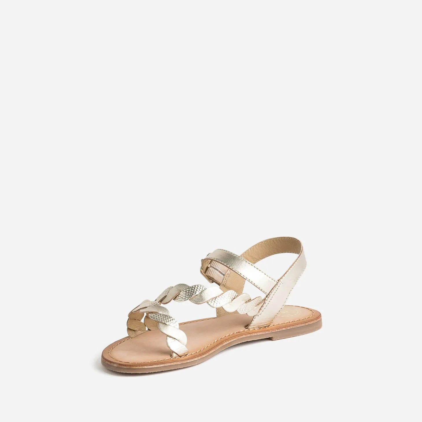 Toute dorée, tout cuir, cette sandale fille est un modèle essentiel. Sur le dessus, deux brides, lisse ou embossée, se croisent avec délicatesse. Robe en tulle ou total look denim, elle est aussi à l’aise pour une cérémonie que pour le quotidien