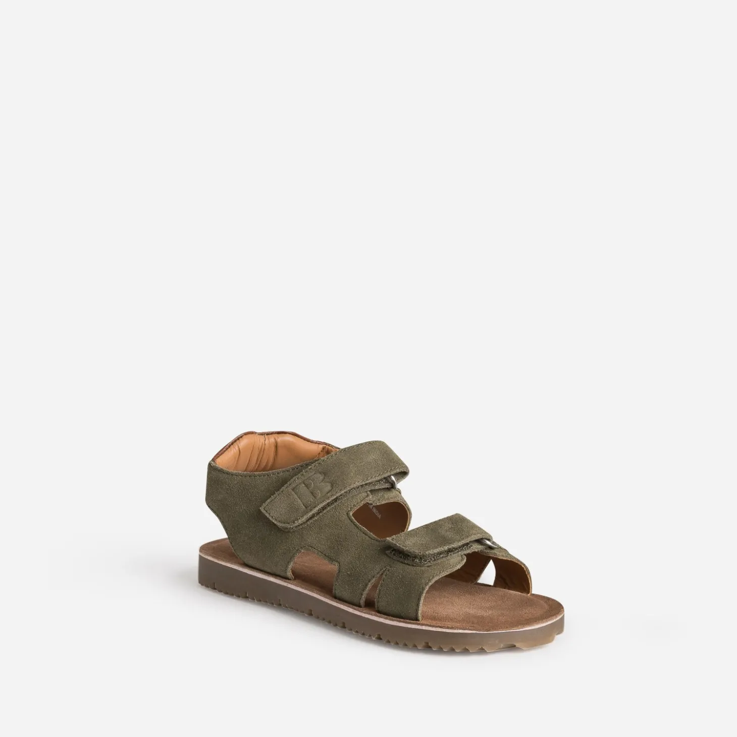 Le confort avant tout, même en sandale ! C’est le pari fou relevé par la marque Buggy, pour chausser les enfants. La tige en cuir velours avec doublure cuir et la semelle première en cuir velours accueillent le pied, grâce à deux scratchs et une bride matelassée. Son coloris kaki, twisté de marron, est parfaitement dans le ton de la saison.