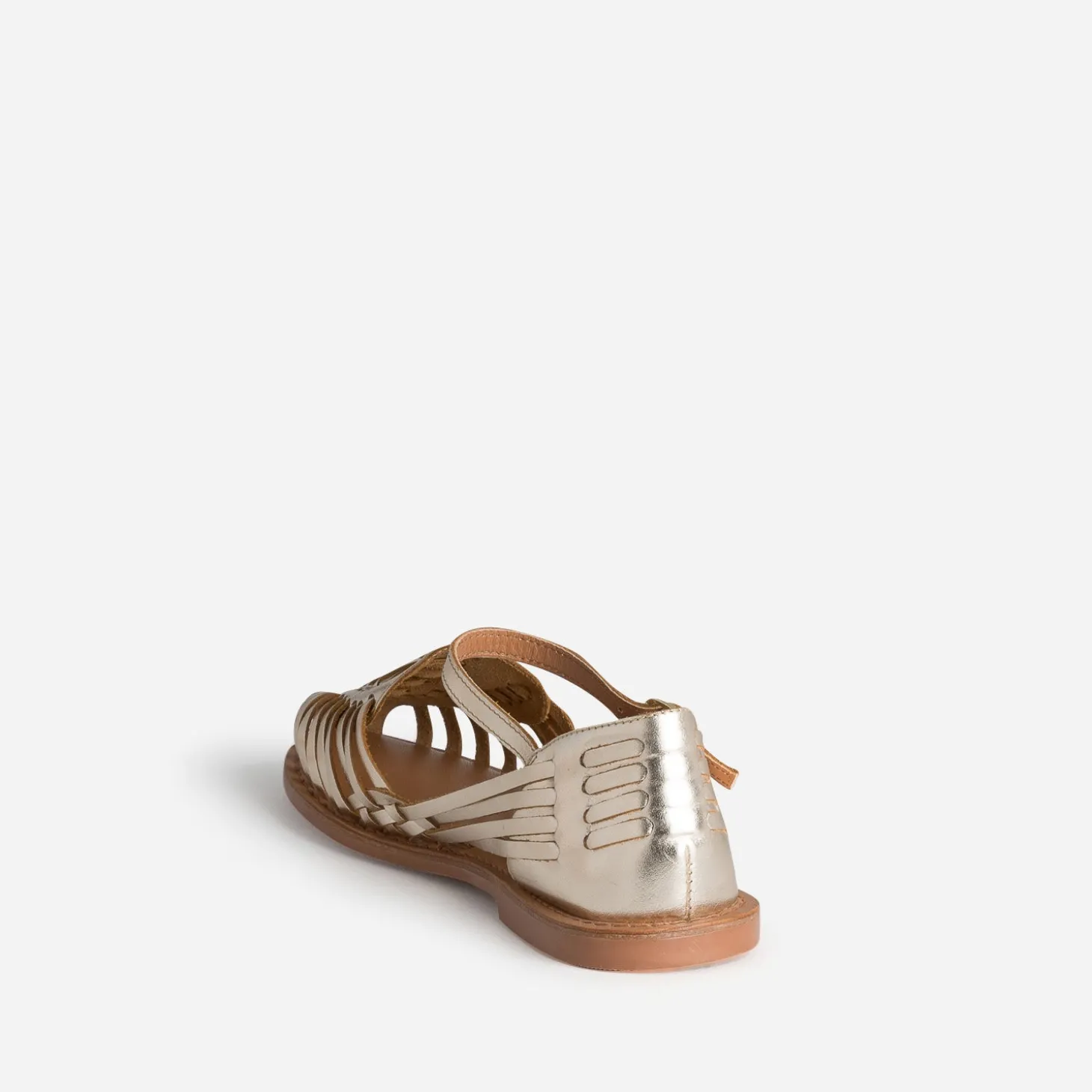Appréhendez l’arrivée de la nouvelle saison, sans compromettre votre style, avec cette sandale dorée revisitée. En cuir lisse, elle maîtrise le tressage avec beaucoup de subtilité, du bout du pied jusqu’au talon. La bride s’ajuste à la cheville pour un meilleur maintien. Un modèle plat, à associer à un pull manches courtes en tricot vieux rose et un bermuda long ivoire, avec une ceinture camel.