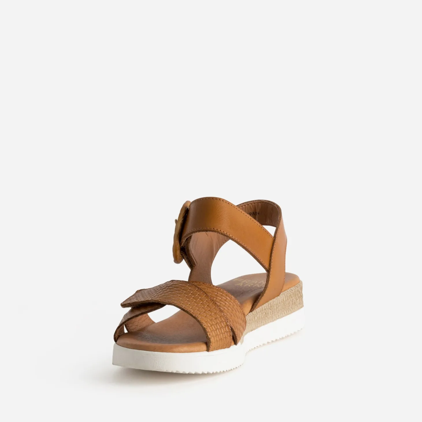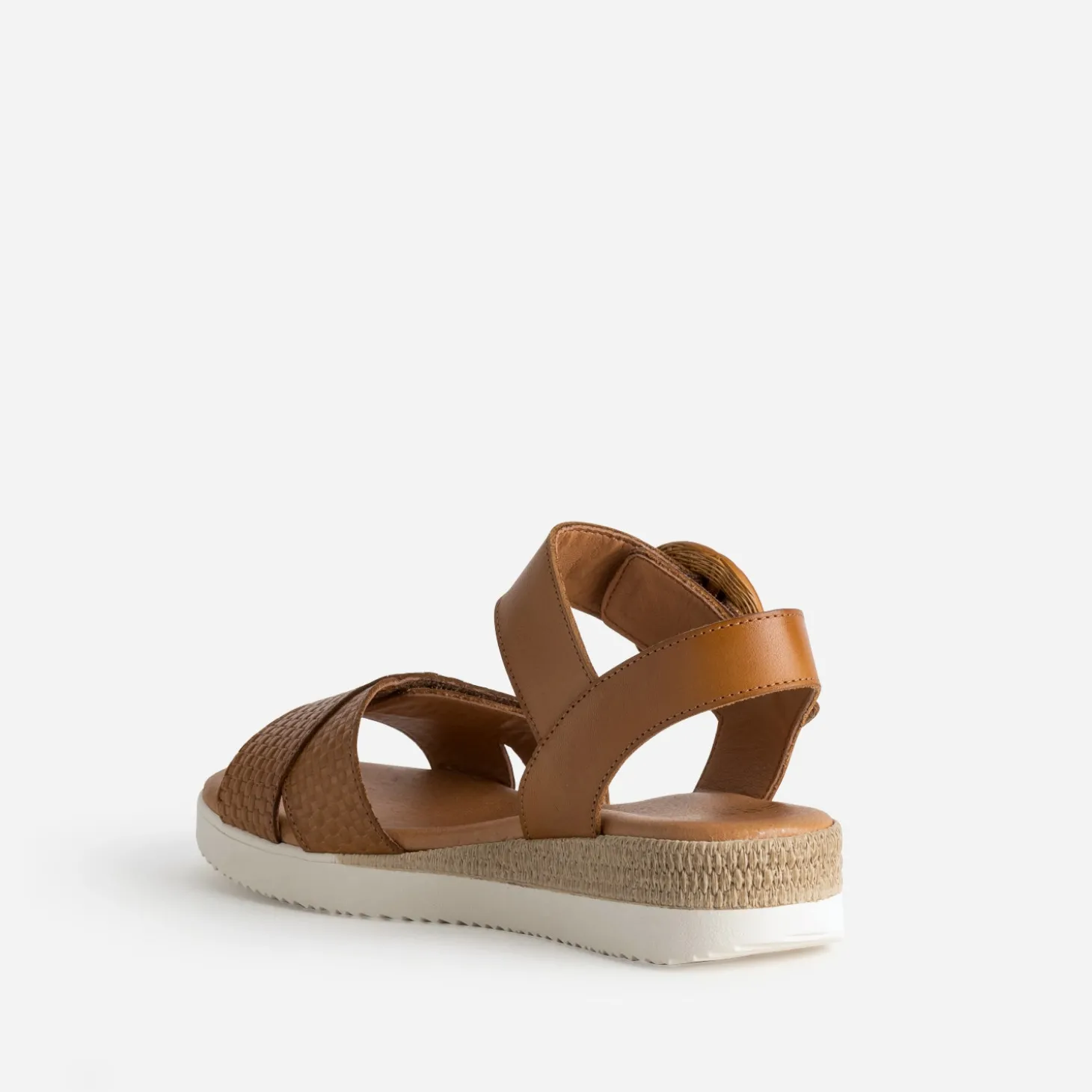 Les jeux de matières s’invitent sur cette sandale pour femme, en clin d’œil évident à l’artisanat : cuir embossé avec effet tressé, boucle façon rotin, semelle extérieure bi-matière légèrement compensée. Afin de ne pas négliger votre confort, elle est montée sur une semelle première moussée, avec bride ajustable par scratch. Un modèle en cuir cognac, facile à accorder avec des nuances de beige et de marron.