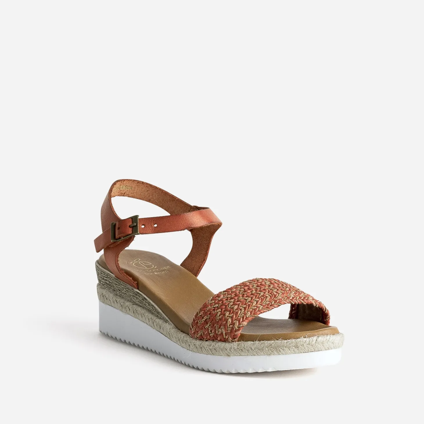 Sandale orange éco-conçue en cuir avec bride tressée