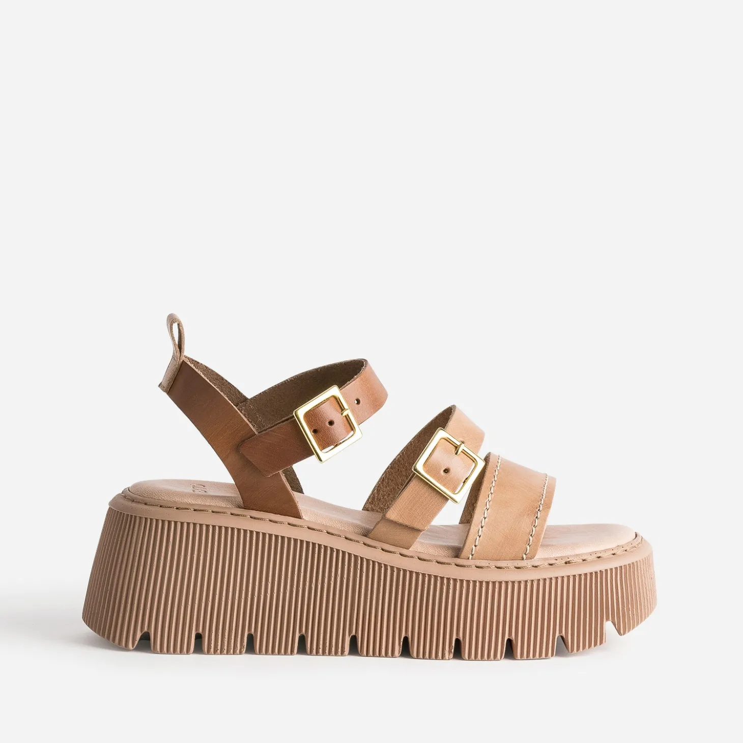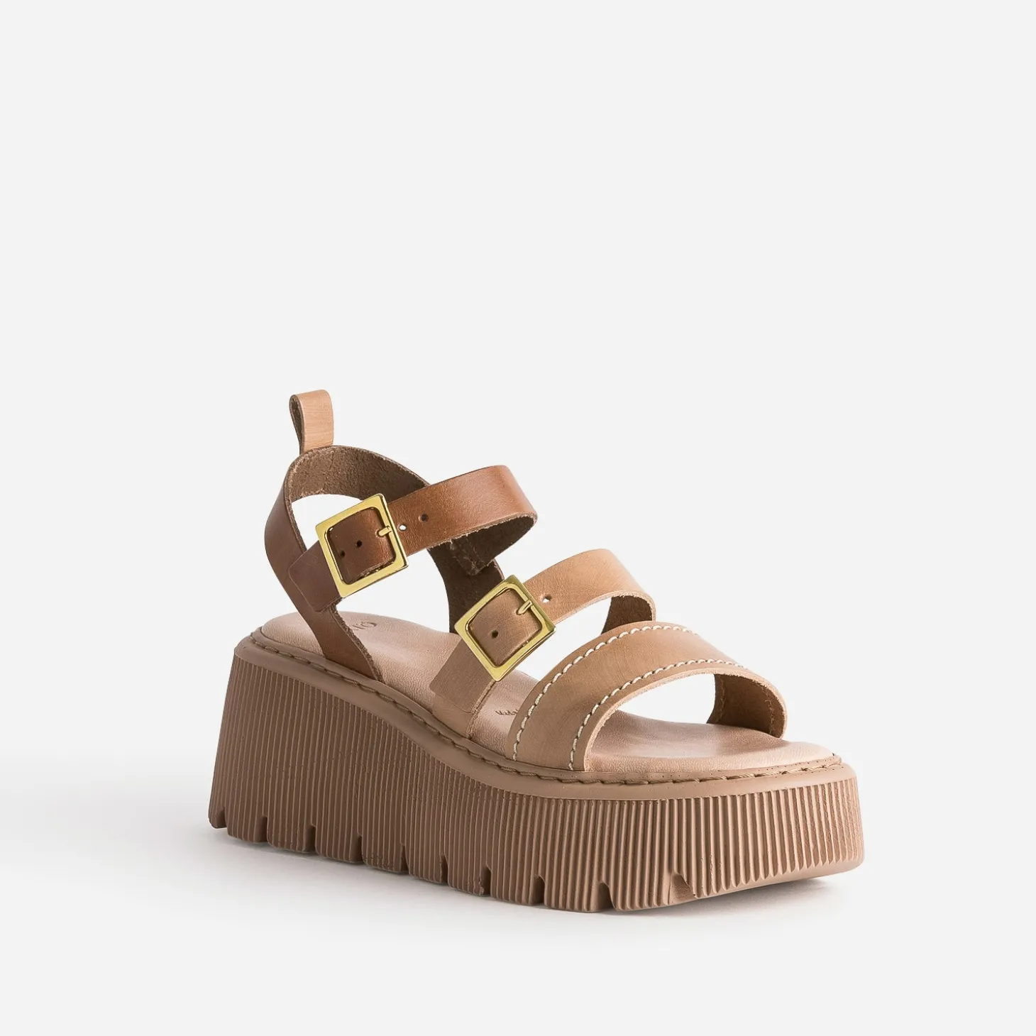 Gagner des centimètres, sans effort ? C’est possible avec cette sandale femme. Montée sur une semelle à plateforme de 3 cm à l’avant et 5,5 cm à l’arrière, elle allonge la silhouette en un clin d’œil. Son atout confort, c’est aussi sa semelle intérieure moussée et ses trois larges brides en cuir dans des nuances de camel. Osez-la en monochrome, avec une tenue toute en fluidité, dans les tons beige, vert foncé ou lilas.