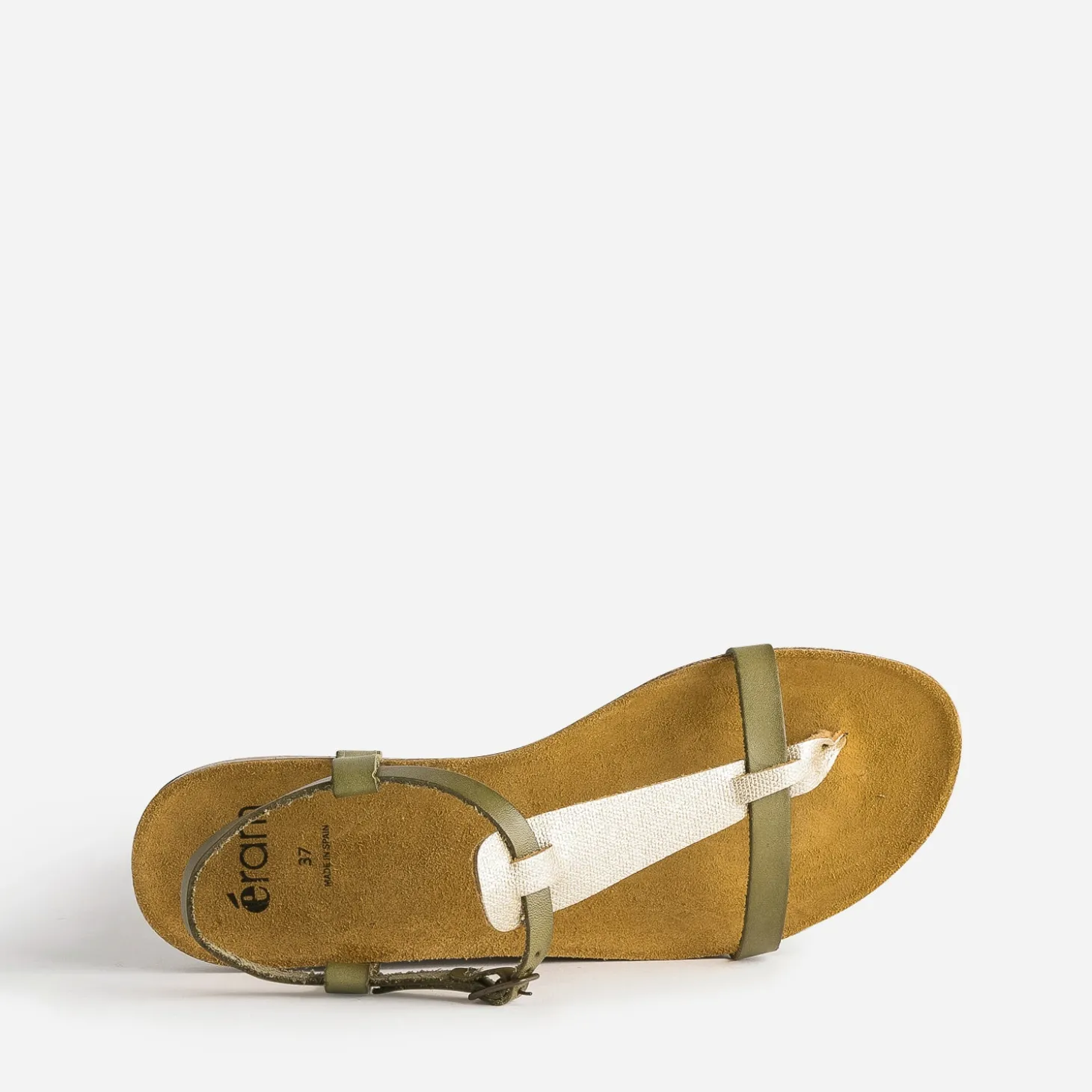 Sandale, forme tong, montée sur semelle anatomique, l’été sera indéniablement confortable et stylé. Les brides en cuir associent le vert kaki et le doré, dans une parfaite harmonie. La semelle 100% cuir promet une douceur inégalée à votre plante du pied ! Privilégiez-la avec une robe longue et vaporeuse dans les tons naturels, et des bijoux dorés.