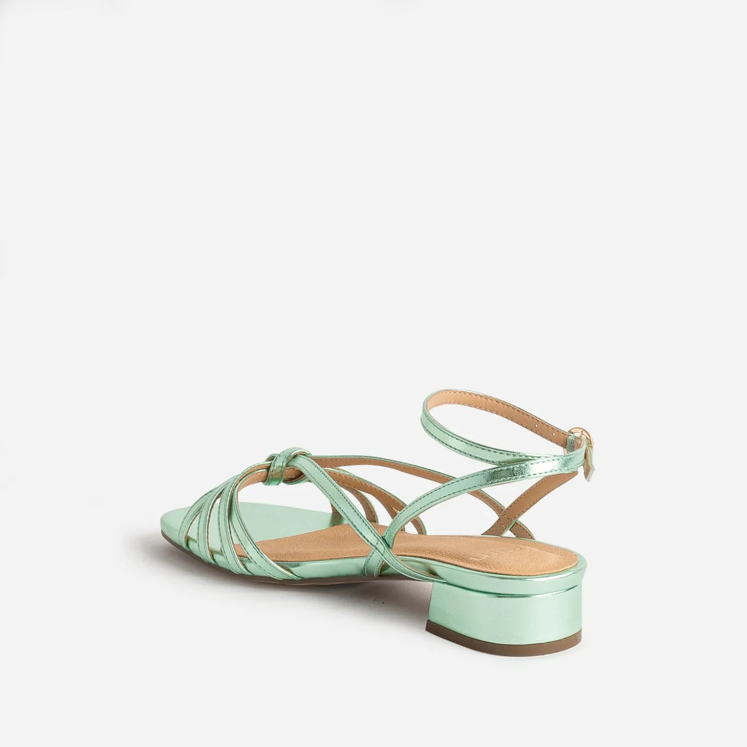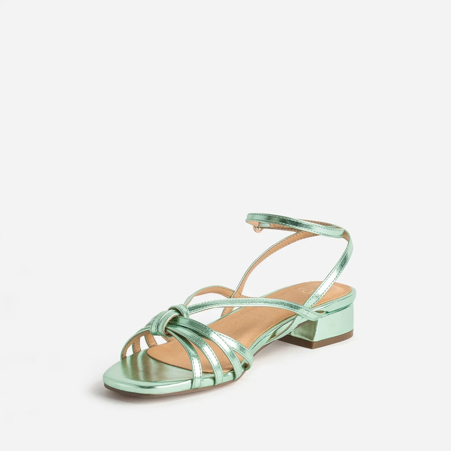 Revoyez vos classiques. Reboostez vos envies. La sandale plate pour femme s’autorise une version métallisée sur un coloris vert clair, pile dans la tendance. Montée sur un talon de 3 cm, elle maintient le pied par un jeu de fines brides sur le bout du pied, le cou-de-pied et autour de la cheville. Une création idéale pour vos cérémonies et vos tenues plus habillées, très facile à matcher avec vos looks du quotidien.