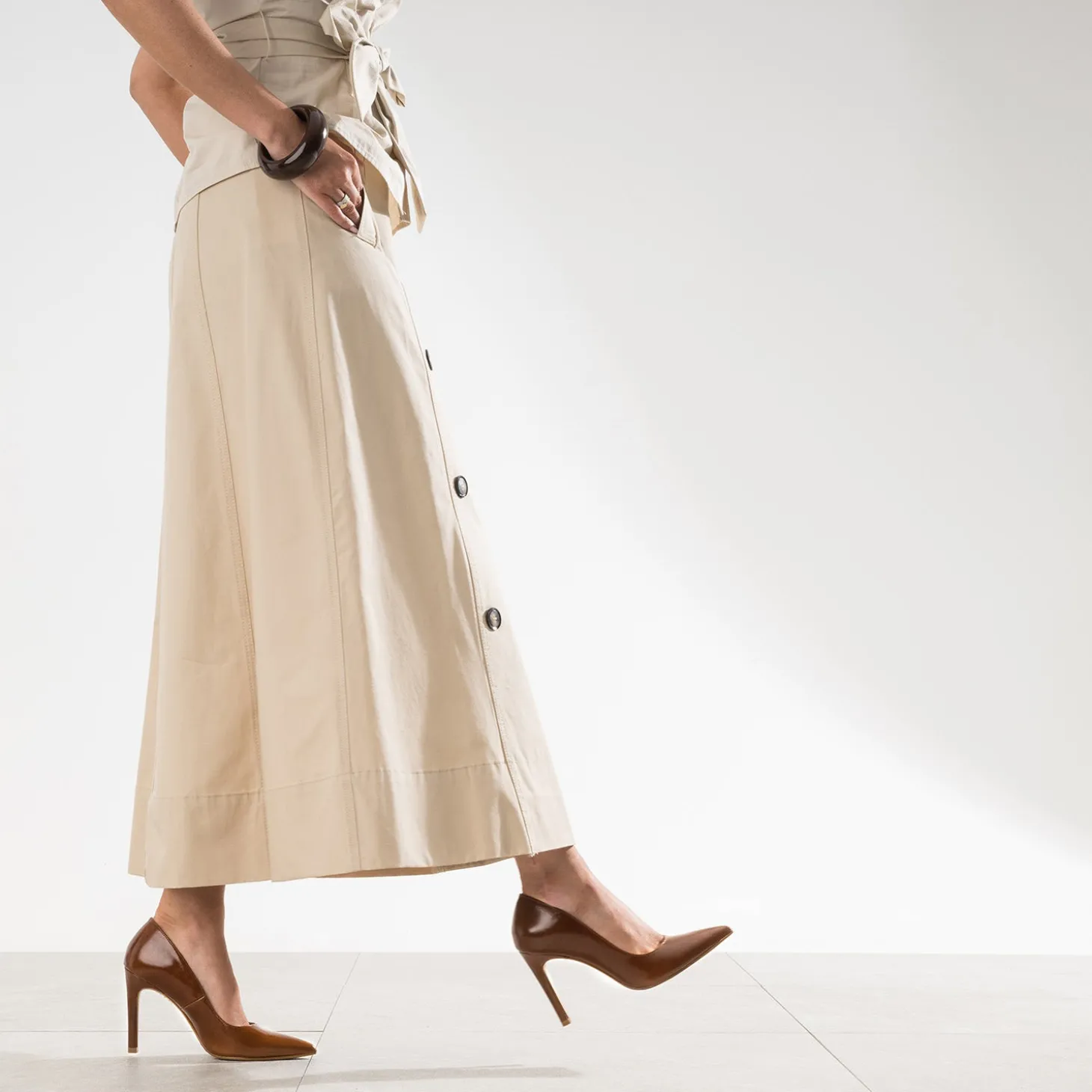 10 cm. C’est le nombre de centimètres que vous allez gagner instantanément avec cet escarpin. En cuir lisse cognac, il associe bout pointu et talon aiguille. Un modèle idéal pour finaliser des looks glamour et chic, au quotidien ou pour un évènement d’exception. Combi-pantalon, tailleur-pantalon, ou blouse lavallière avec jupe-crayon, laissez libre cours à vos envies.
