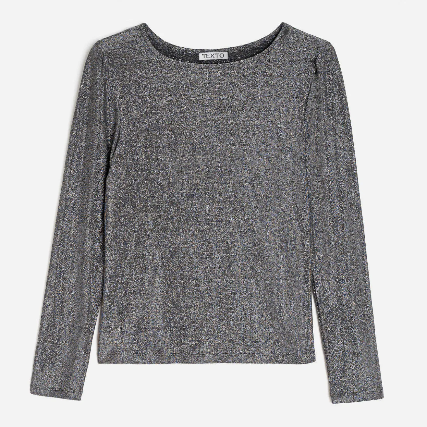Envie de twister vos looks du quotidien en looks de fête ? Enfilez ce tee-shirt revisité. En maille métallisée, il opte pour le gris argenté, facile à jouer avec du noir et les épaulettes structurent le modèle, d’une touche 80’s.