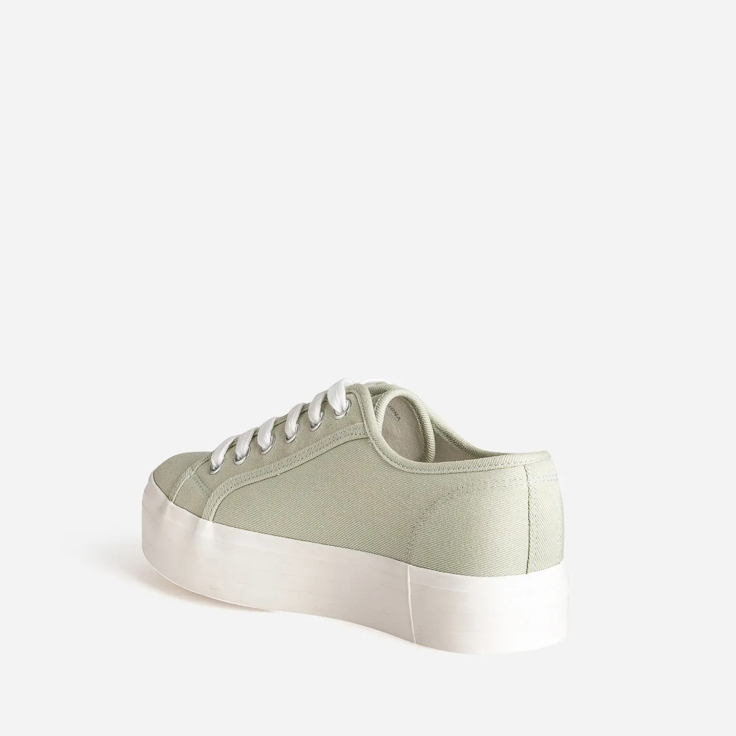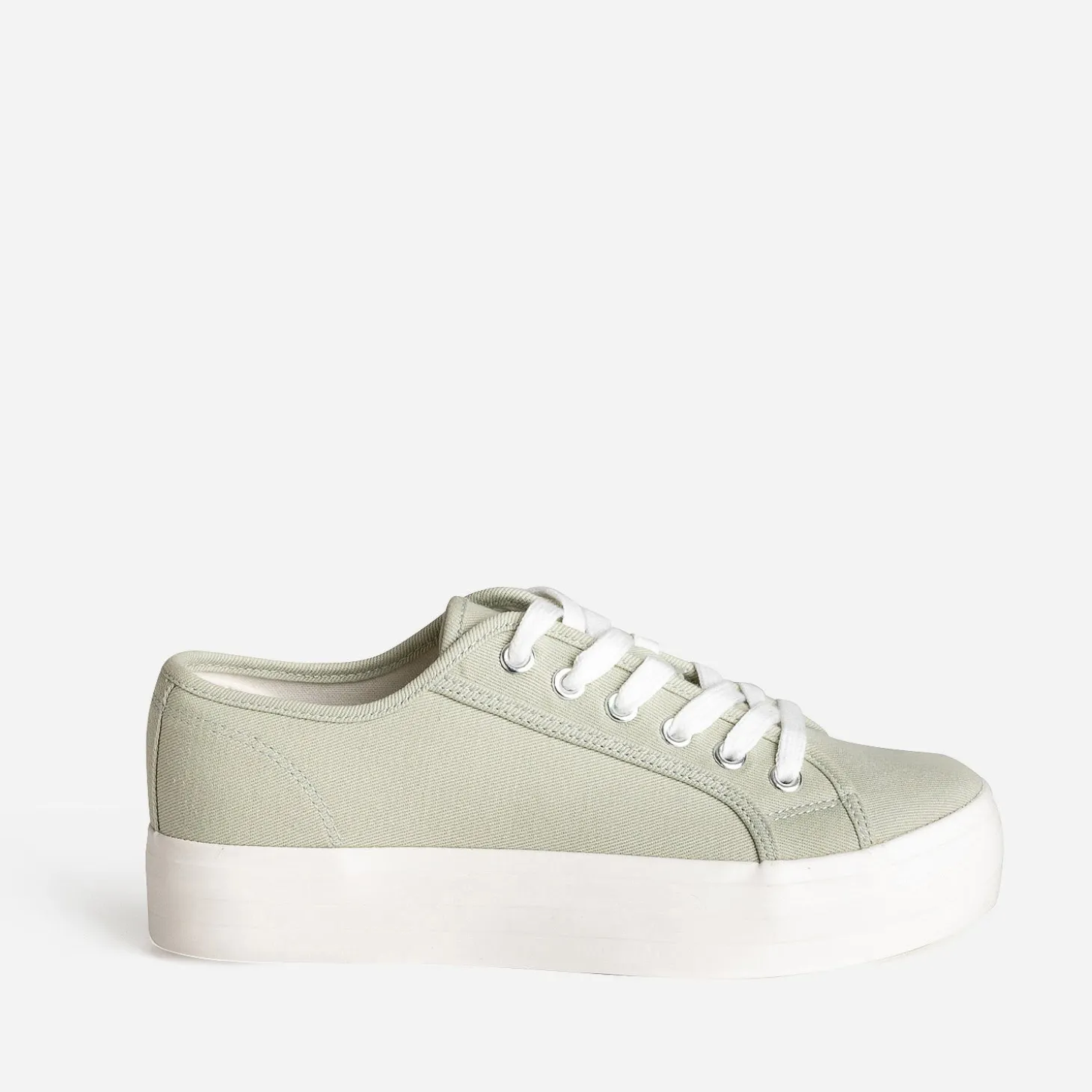 Ce vert là, il est parfait. Vert sauge, il assure des looks décontractés. La tennis femme associe toile et semelle épaisse blanche, pour s’inscrire dans la tendance du moment. Un modèle à privilégier à l’entre saison, avec un tee-shirt, un jean cropped et une veste en jean.