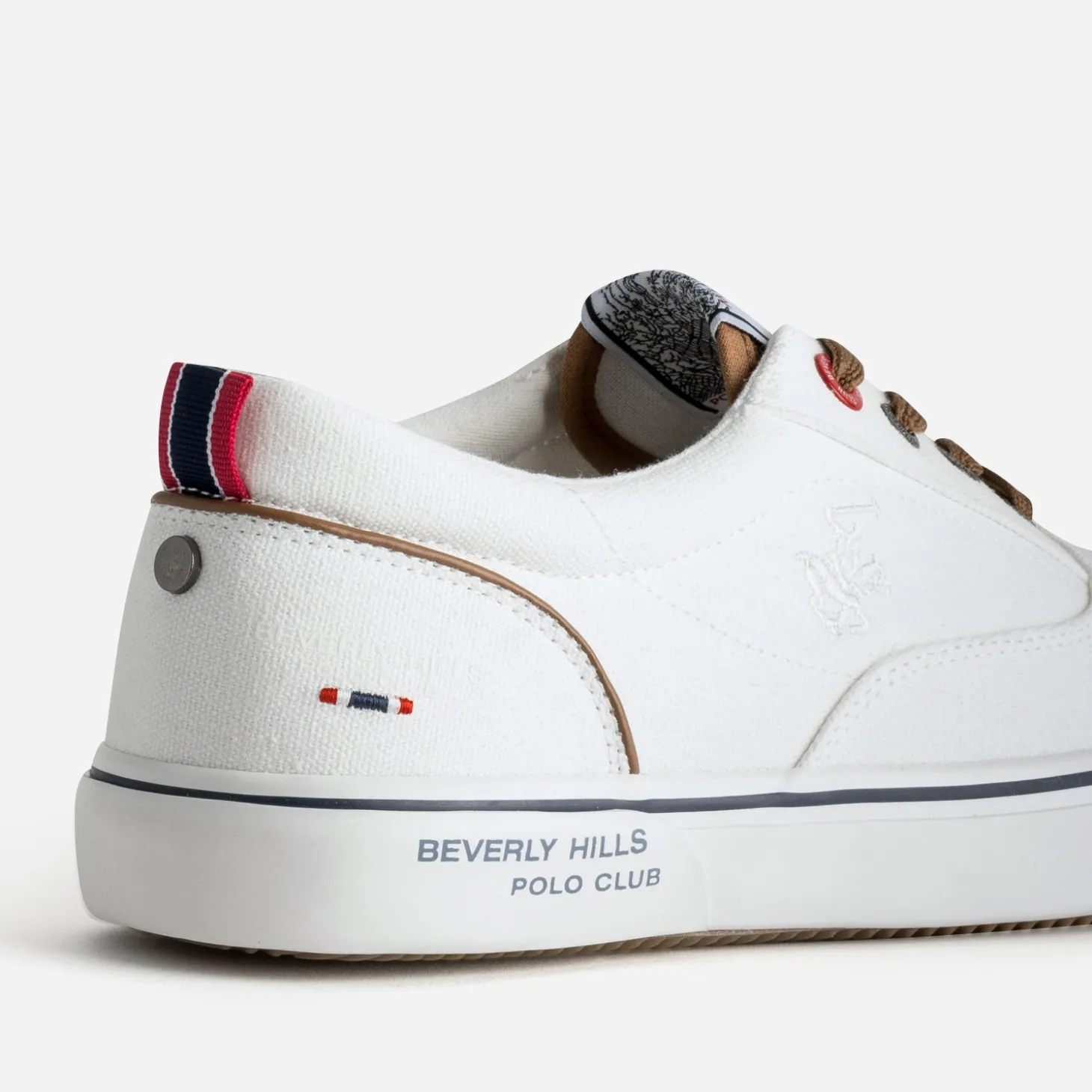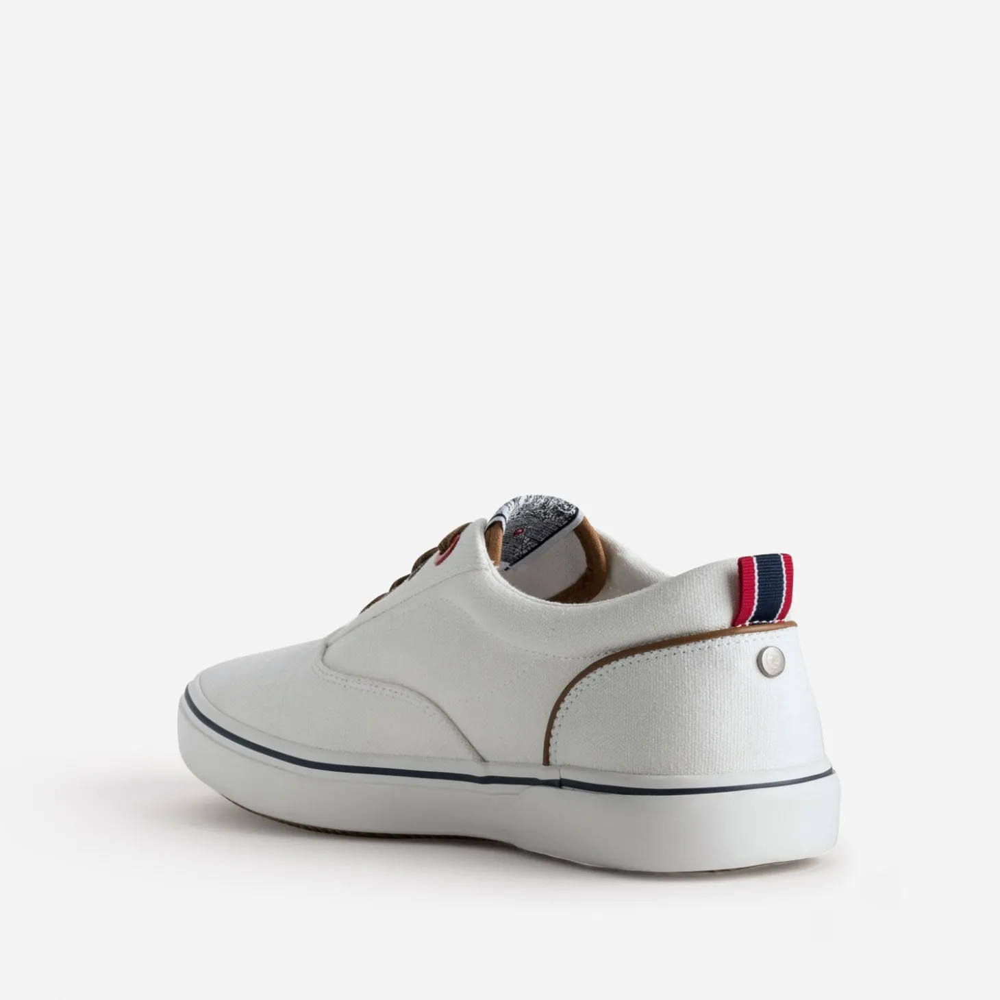 La tennis en toile est un modèle incontournable du shoesing d’été. Ecrue, elle se ferme par un lacet marron, en écho au biais qui souligne le contrefort. Sur la languette, sur le côté, le logo cavalier emblématique s’impose version étiquette tissée ou broderie. Un modèle idéal, en vacances ou en week-end, avec un polo blanc et un bermuda chino beige ou bleu marine.