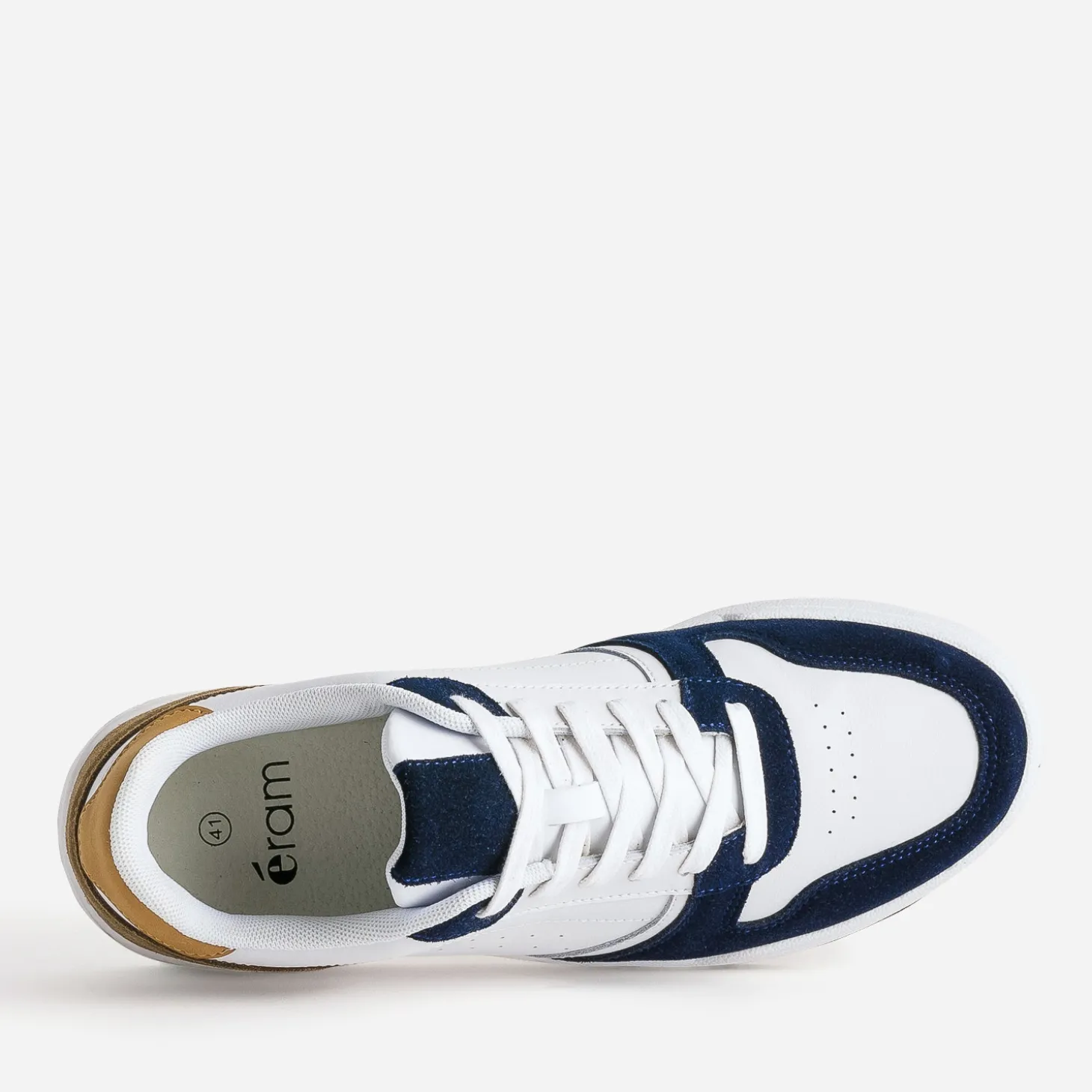 https://www.eram.fr/homme/chaussures-homme/chaussure-blanche-homme.htmlL’iconique tennis blanche s’autorise des touches de couleurs sobres. Sur le bout, en cuir velours marine d’une part. Sur les contrefort, en cuir lisse et velours beige, d’autre part. Un modèle relativement simple, qui traverse les modes sans se démoder, en s’accordant facilement avec vos tenues du quotidien.